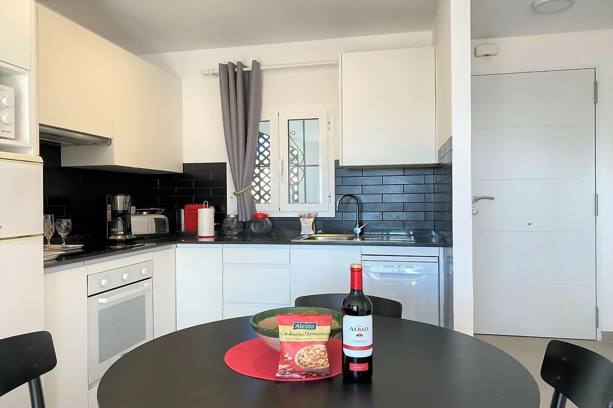 Extra voorzieningen zijn onder andere een volledig uitgeruste open keuken met een keramische kookplaat, oven, magnetron, vaatwasser en essentieel keukengerei om thuis te koken. De badkamer is voorzien van een douche, een föhn en schone handdoeken. Snel internet, satelliet-tv en een wasmachine maken dit appartement van 45 m² nog comfortabeler. Hoewel de accommodatie niet toegankelijk is voor mensen met beperkte mobiliteit, biedt het een ontspannen en zelfstandige accommodatie aan de kust.