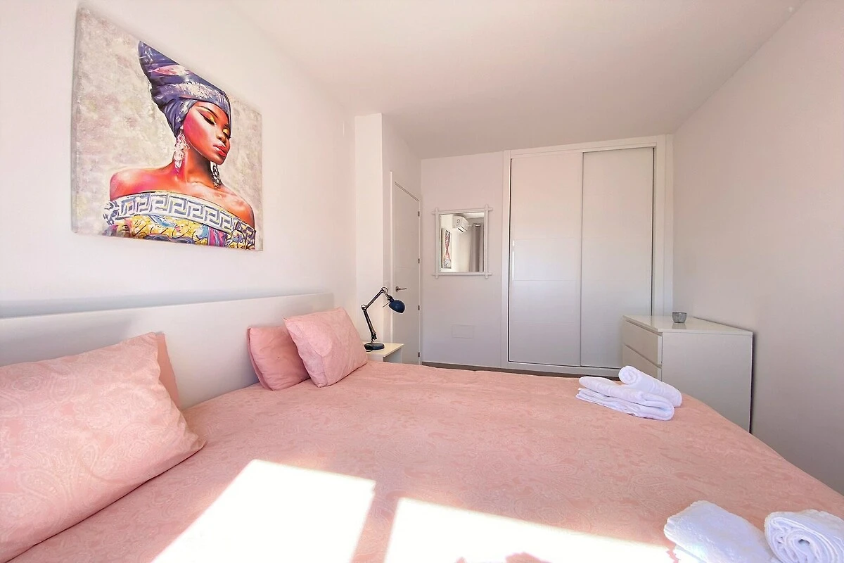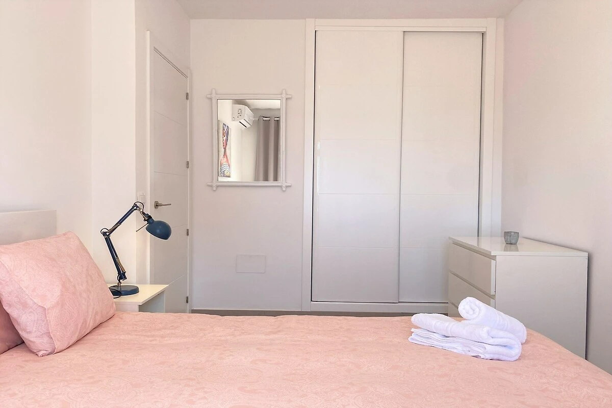 Dit elegante vakantiehuis, een modern appartement met uitzicht op zee op het zuiden, is ontworpen om comfortabel plaats te bieden aan twee gasten. Het beschikt over een gezellige slaapkamer met een tweepersoonsbed, een lichte woonkamer en een eigen balkon met uitzicht op zee. Huisdieren zijn niet toegestaan, maar gasten profiteren van airconditioning, toegang tot twee gemeenschappelijke zwembaden en optionele services zoals een babybedje, kinderstoel en welkomstpakket. Het appartement is ideaal voor stellen of individuele reizigers die op zoek zijn naar een ontspannen verblijf in een moderne omgeving.