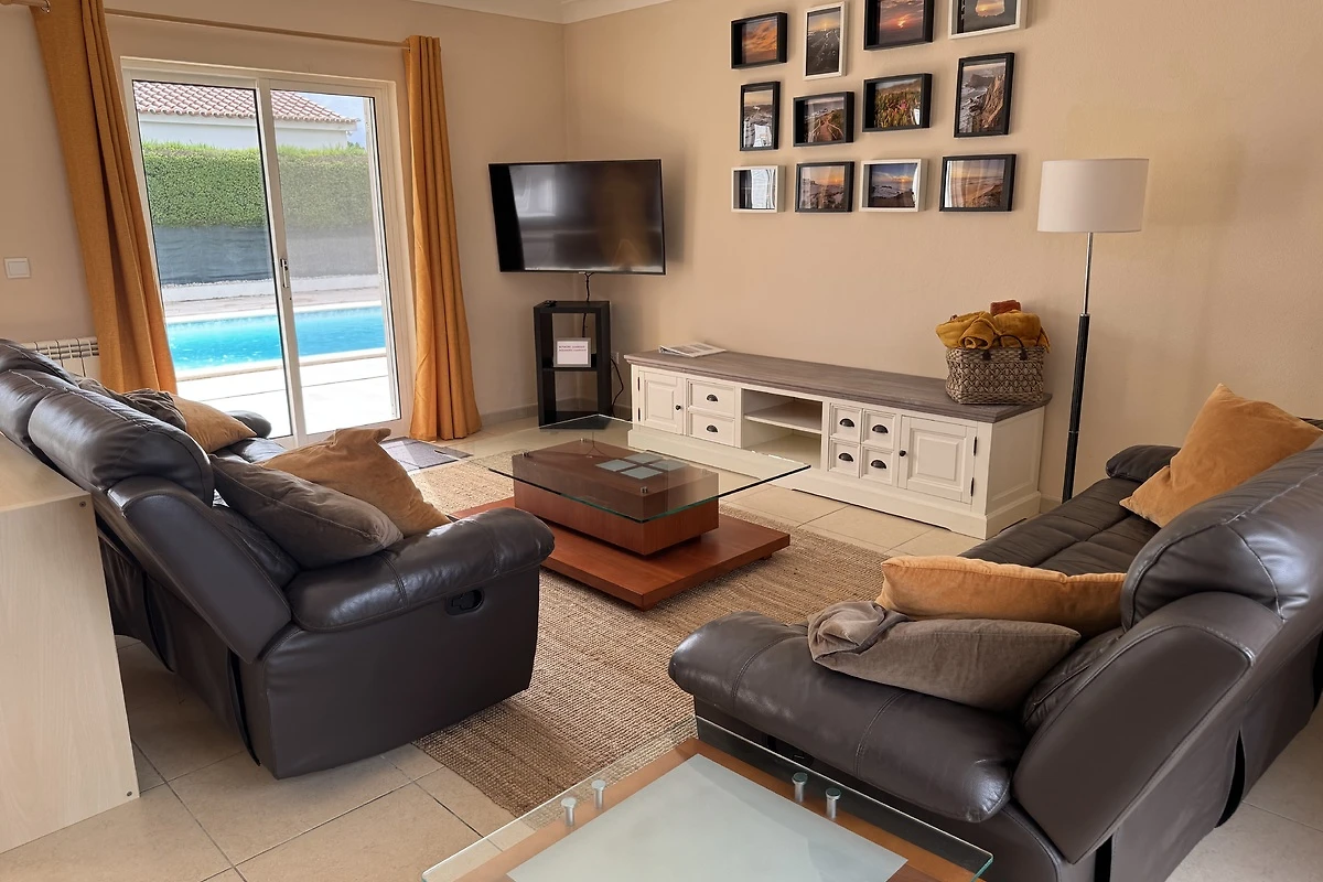 Vanaf het moment dat je aankomt, voel je de kalme energie van de westkust van de Algarve — het zachte geritsel van dennenbomen, de warmte van de zon en de geur van zout in de lucht. Het huis ligt op slechts een paar minuten rijden van drie spectaculaire stranden: