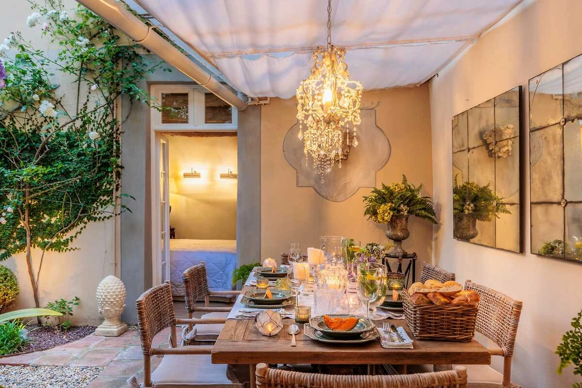 Dit prachtig gerenoveerde appartement, oorspronkelijk een koetshuis uit de 17e eeuw, beschikt over een ruime antieke tuin vol charmante hoekjes om te dineren en te ontspannen tussen eeuwenoude bomen. Met een romantisch uitzicht over deze privétuin beschikt de accommodatie over een veranda, perfect om buiten te eten, en een gezellig terras met ligstoelen. Moderne voorzieningen zijn onder andere betrouwbare wifi, airconditioning en een goed uitgeruste keuken met hoogwaardige apparatuur, zodat u alles wat u nodig heeft voor het bereiden van maaltijden binnen handbereik heeft.