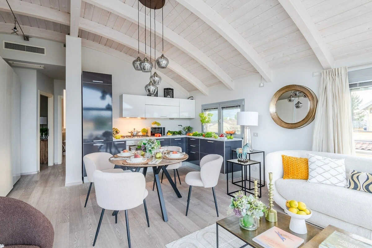Stel je voor dat je wakker wordt in een zonovergoten heiligdom boven de historische muren van Lucca, badend in goudkleurig licht door kamerhoge ramen. Dit moderne penthouse in het rustige San Concordio biedt ongeëvenaarde luxe en combineert hedendaags design met de tijdloze schoonheid van Toscane. Stap binnen in een ruime, open leefruimte, waar strak meubilair en natuurlijk licht samenkomen. Glazen wanden omlijsten een adembenemend panoramisch uitzicht op de oude vestingwerken van Lucca, waardoor elegantie van binnen naadloos samenvloeit met de pracht van buiten.