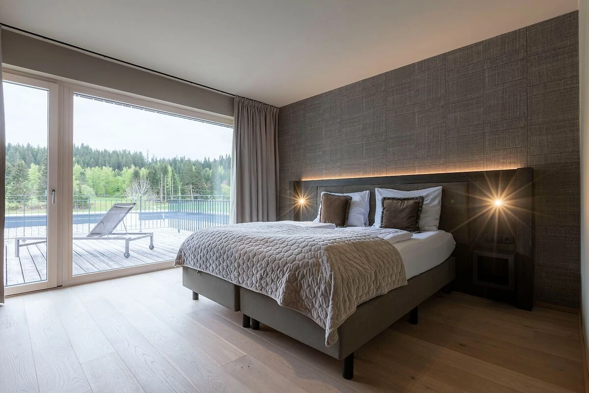 Twee exclusieve wellnessruimten bieden pure ontspanning (verwarmd buitenzwembad, overloopzwembad, sauna, biosauna, stoombad of infraroodcabine). Rustige toevluchtsoorden zoals de serre, stijlvolle ontspanningsruimten en een zonnige ligweide met uitzicht maken de feelgood-ervaring perfect. Voor actieve gasten is er een moderne fitnessruimte op de begane grond.