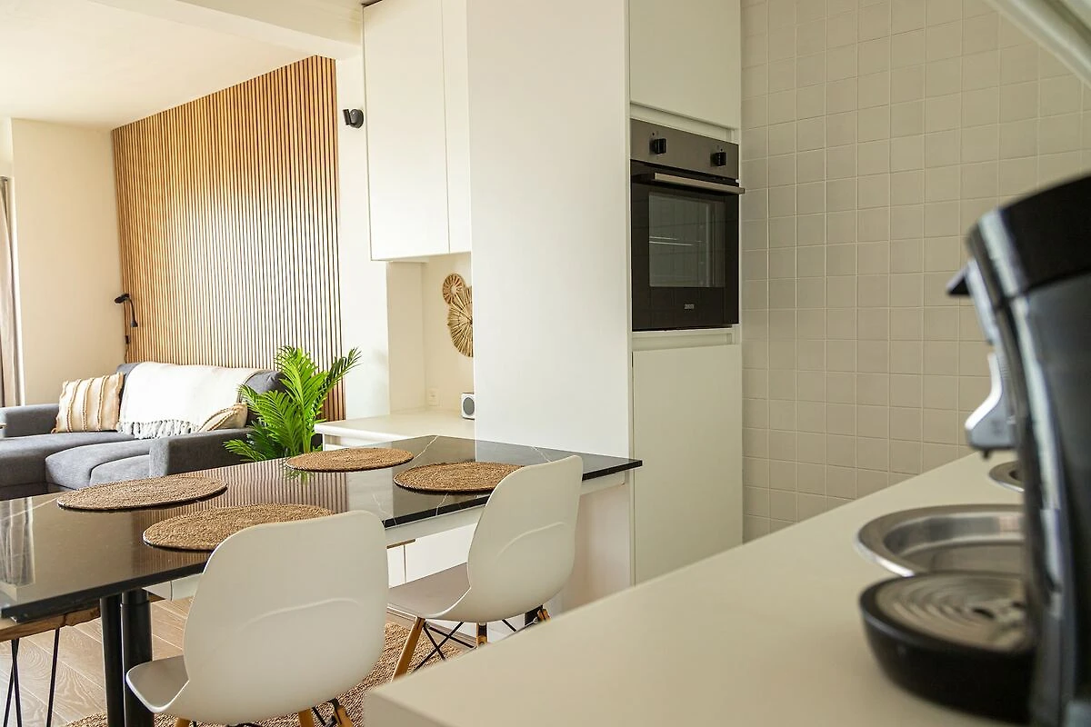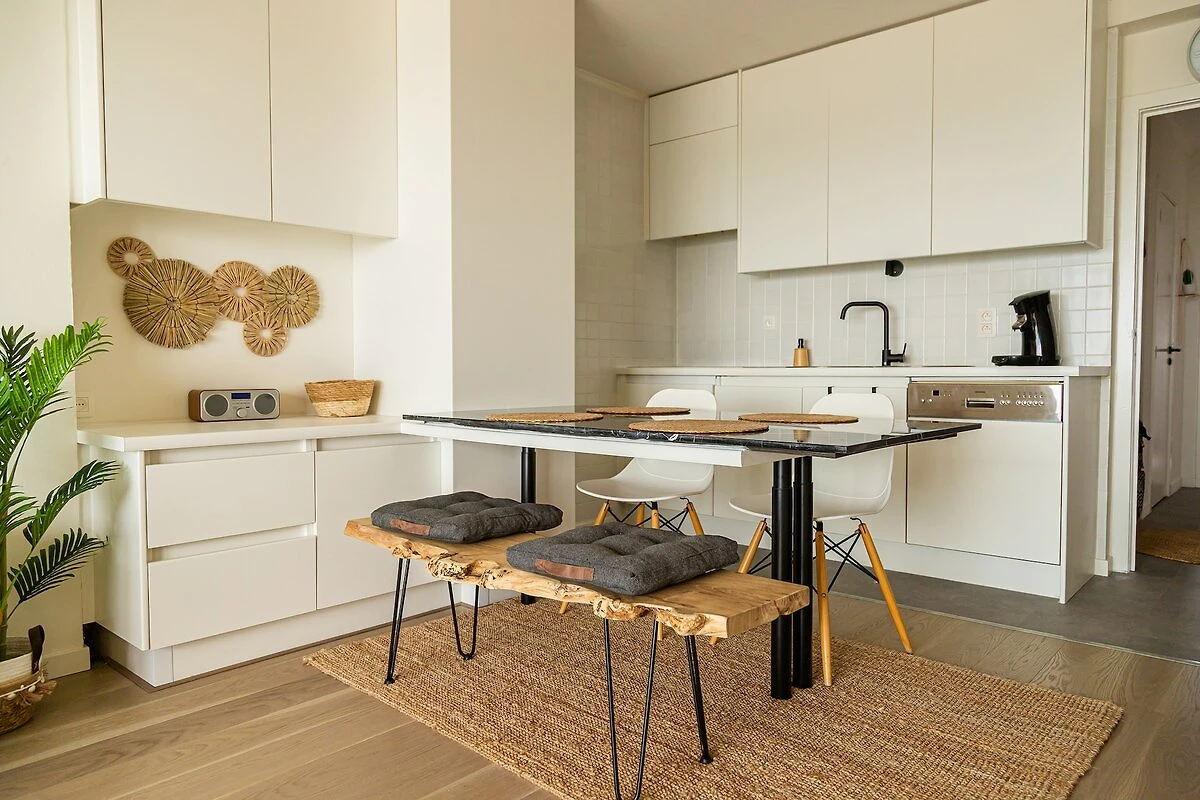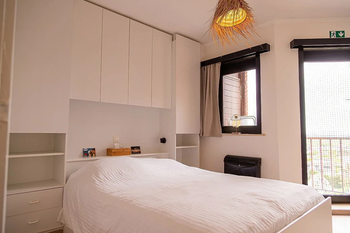 Appartement op de negende verdieping, perfect voor een stijlvolle vakantie met zeezicht. De woning beschikt over één slaapkamer met een comfortabel dubbel bed en is recent volledig gerenoveerd en ingericht in trendy boho-stijl, wat meteen zorgt voor een heerlijk vakantiegevoel. De gezellige woonkamer strekt zich uit over de volledige breedte van het appartement en is voorzien van grote ramen van vloer tot plafond, waardoor u kunt genieten van een prachtig panoramisch zicht op zee. De open, volledig uitgeruste keuken biedt al het nodige comfort om zorgeloos te koken. De badkamer met ligbad en het afzonderlijke toilet zorgen voor extra gemak. Aansluitend aan de slaapkamer bevindt zich een klein terrasje, ideaal om even te ontspannen in de buitenlucht. Het appartement ligt in een uitstekende locatie, op wandelafstand van winkels en openbaar vervoer. Er is geen vaste parkeerplaats, maar doorgaans is er voldoende parkeergelegenheid op de parking naast het gebouw. Een modern en sfeervol vakantieverblijf met alles wat u nodig heeft voor een zorgeloze tijd aan de kust. Wifi: ja - parking: niet inbegrepen - lakens: zelf meenemen - handdoeken: zelf meenemen.