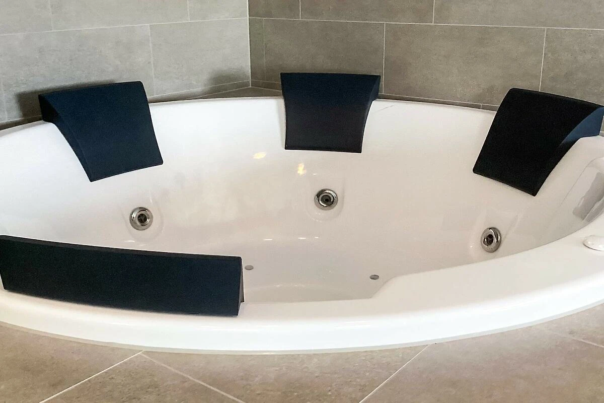 , woonkamer(2x 1-pers. vouwbed, TV, spelcomputer), keuken(kachel(inductie), koffiezetapparaat, oven, magnetron, afwasmachine, koel-/vriescombinatie), woon/slaapkamer(TV, chromecast), slaapkamer(2-pers. bed), slaapkamer(2x 1-pers. bed), slaapkamer(2x 1-pers. bed), slaapkamer(2x 1-pers. bed), slaapkamer(2-pers. bed), badkamer(wasdroger, wasbak, douche, toilet, wasmachine), badkamer(wasbak, douche, toilet), bubbelbad(in huis, 6 personen), terras, tuinmeubilair, ligstoelen, zwembad(in huis), speeltoestellen, lucht-water warmtepomp