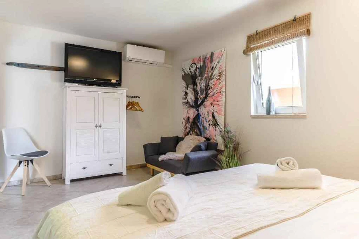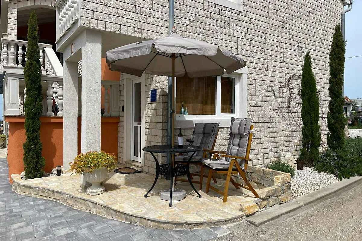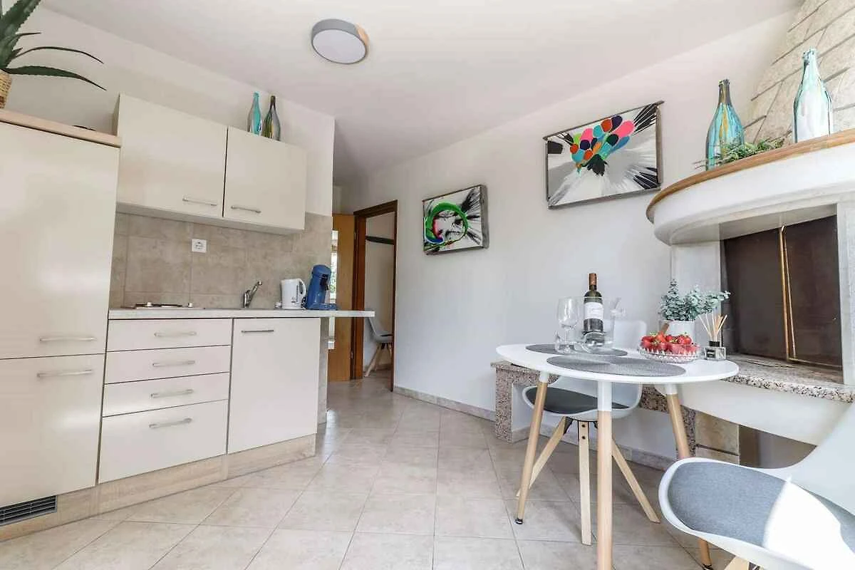 Ligging: Mugeba. De vakantiewoning ligt in een appartementenhuis en is modern ingericht. Het grondstuk is in een woongebied. Deze plaats is populair vanwege het uitzicht op de zee en het ligt op een rustige en zonnige plek. De toegangsweg naar het terrein gaat via een geasfalteerde zijstraat. Bij het huis is U 1 parkeerplaats voor een auto op het perceel beschikbaar. De dichtsbijzijnde winkels zijn op 2,3 km afstand en restaurant 1,8 km. vliegveld in Pula 52 km.