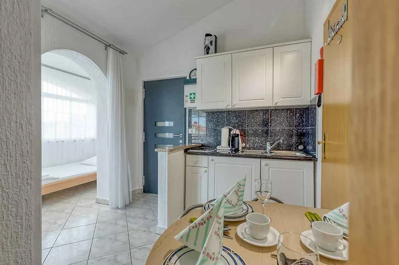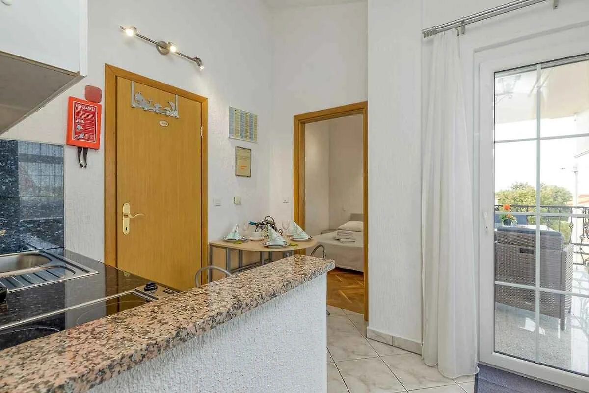 Ligging: Antonci. De vakantiewoning ligt in een appartementenhuis en is functioneel ingericht. Bij het huis zijn U 2 parkeerplaatsen voor meerdere auto's op het perceel beschikbaar. Voor elektrische auto's met een toeslag van €20 per lading. De dichtsbijzijnde winkels zijn op 2,6 km afstand, restaurant 4 km en centrum 4 km. vliegveld in Pula 55 km.