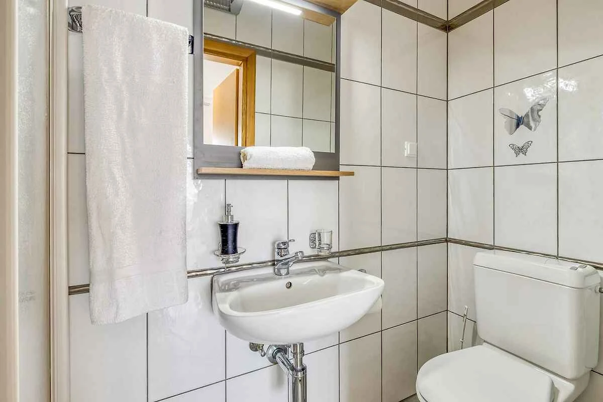 Uw vakantiewoning: Uw vakantiewoning beslaat 1 verdieping, 2 kamers (daarvan 2 slaapkamers), is 34 m² groot en is geschikt voor maximaal 3 personen. Een airconditioning zorgt op hete dagen voor een aangename temperatuur. Roken is binnen niet toegestaan. De indeling van de kamers is als volgt: slaapkamer met 1 éénpersoonsbed. slaapkamer met 1 tweepersoonsbed. keuken met gasfornuis, koelkast en koffiemachine. badkamer met douche, 1 wastafel en WC.
