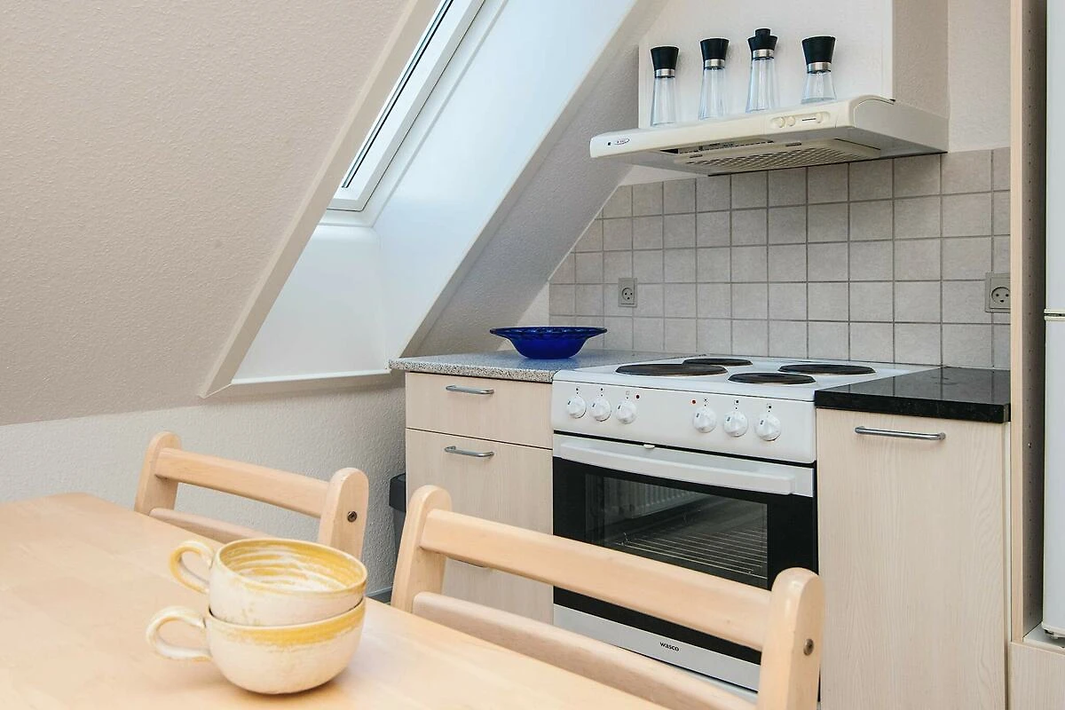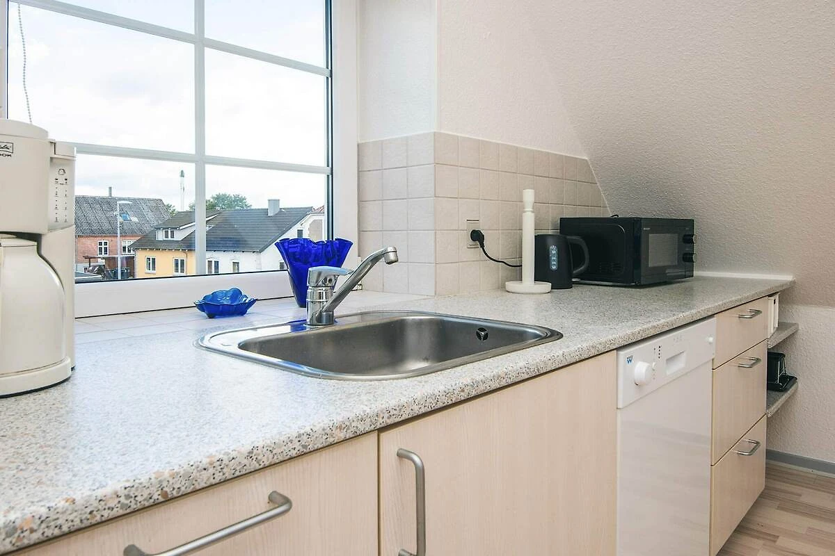 , woonkamer(2-pers. vouwbed, TV(duitse zender(s), Deense TV zenders (DR1 en TV2), noorse TV zenders (NRK en TV2), zweedse TV zenders)), keuken(fornuis(elektrisch), koffiezetapparaat, magnetron, afwasmachine, vriezer(1-59L), koel-/vriescombinatie), slaapkamer(2-pers. bed), badkamer(wasbak, douche, toilet, wasmachine)