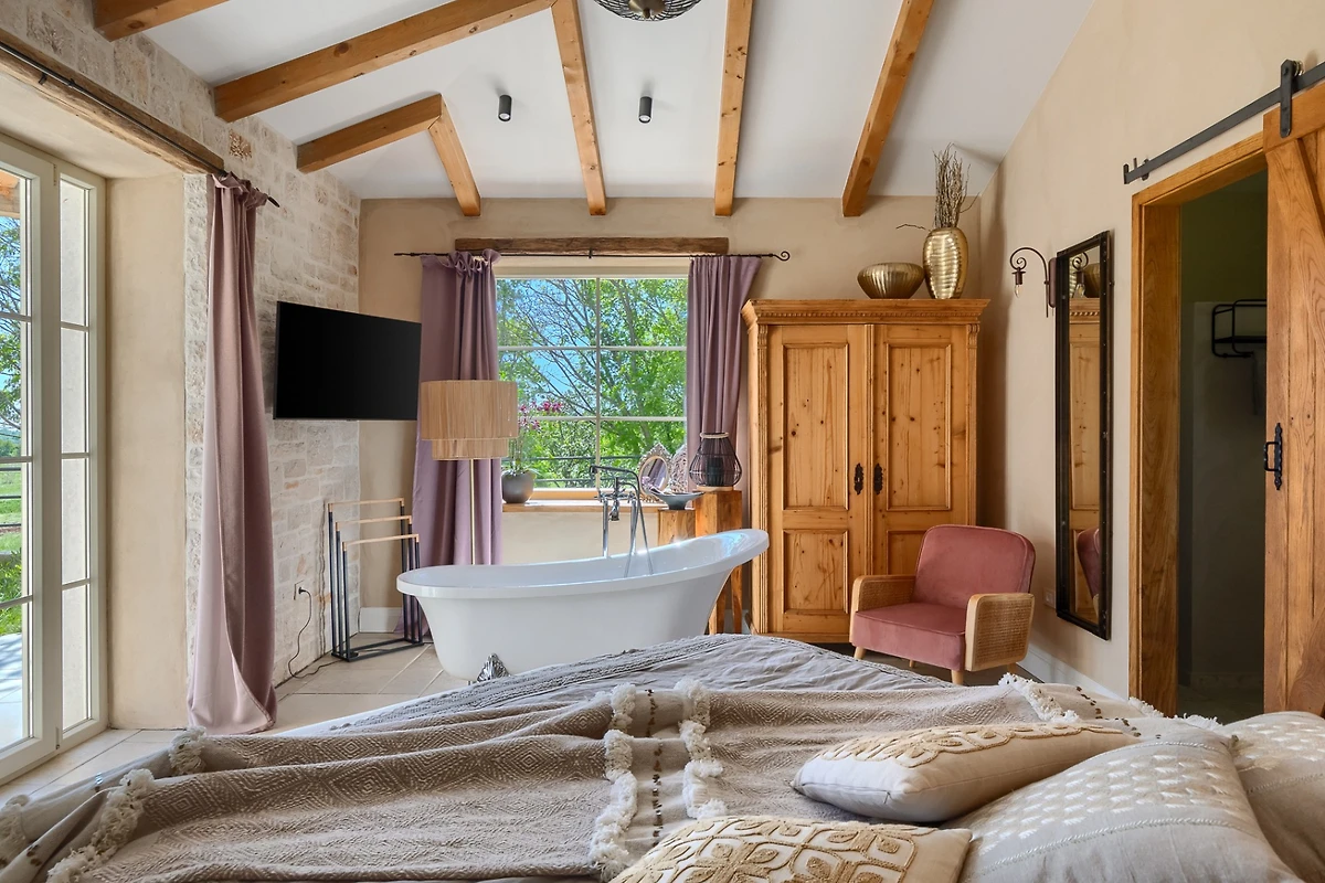 Tevens heeft u de beschikking over tuin, tuinmeubilair, omheind perceel, terras, wasmachine, droger, barbecue, openhaard, strijkijzer, internet (wifi), sauna, jacuzzi, spa, warmtepomp, airconditioning, verwarmd zwembad privé, openlucht parkeerplaats in in het zelfde gebouw, satelliet tv.
