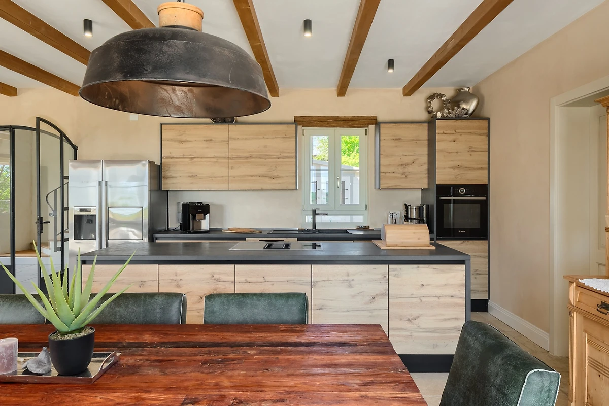 De open keuken, met keramisch fornuis, is uitgerust met koelkast, oven, vriezer, vaatwasmachine, koffiezetapparaat, broodrooster en waterkoker.