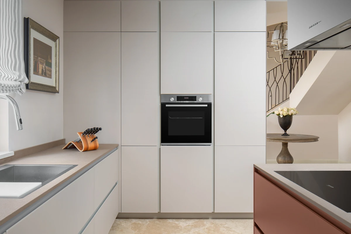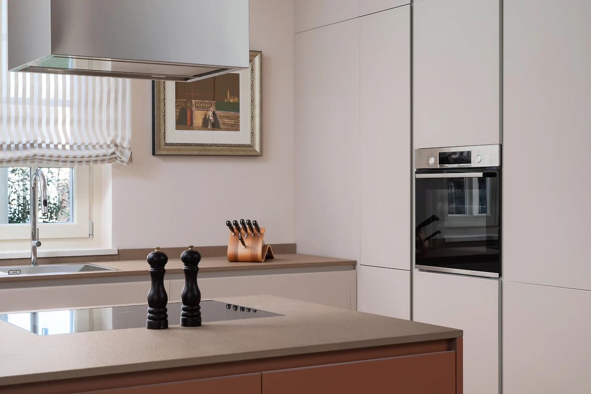 De open keuken, met inductie kookplaat, is uitgerust met koelkast, oven, vriezer, vaatwasmachine, servies/bestek, keukengerei, koffiezetapparaat, broodrooster en waterkoker.