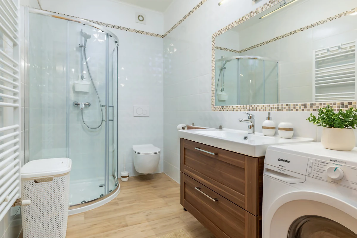 De open keuken, met gasfornuis, is uitgerust met koelkast, magnetron, oven, vriezer, vaatwasmachine, servies/bestek, keukengerei, koffiezetapparaat, broodrooster en waterkoker.