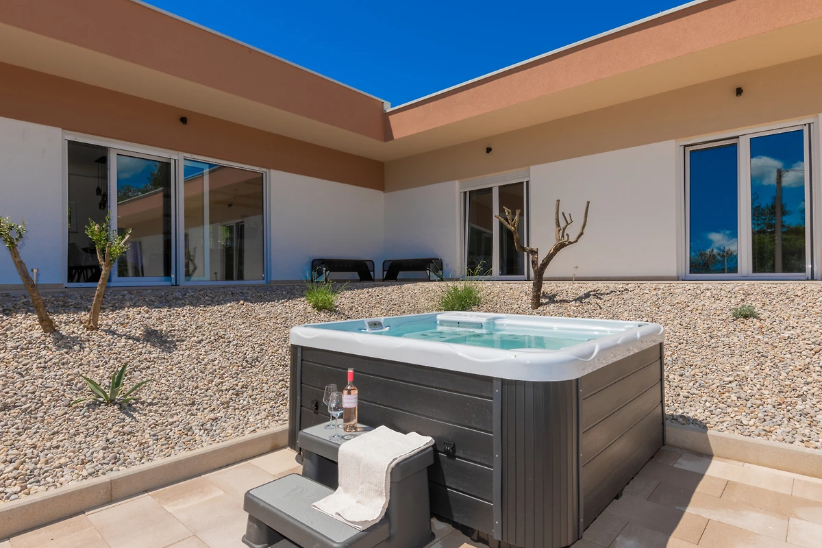 Tevens heeft u de beschikking over tuin, tuinmeubilair, terras, wasmachine, droger, barbecue, strijkijzer, internet (wifi), haardroger, jacuzzi, spa, warmtepomp, airconditioning, verwarmd zwembad privé, openlucht parkeerplaats in in het zelfde gebouw, Televisie, satelliet tv.