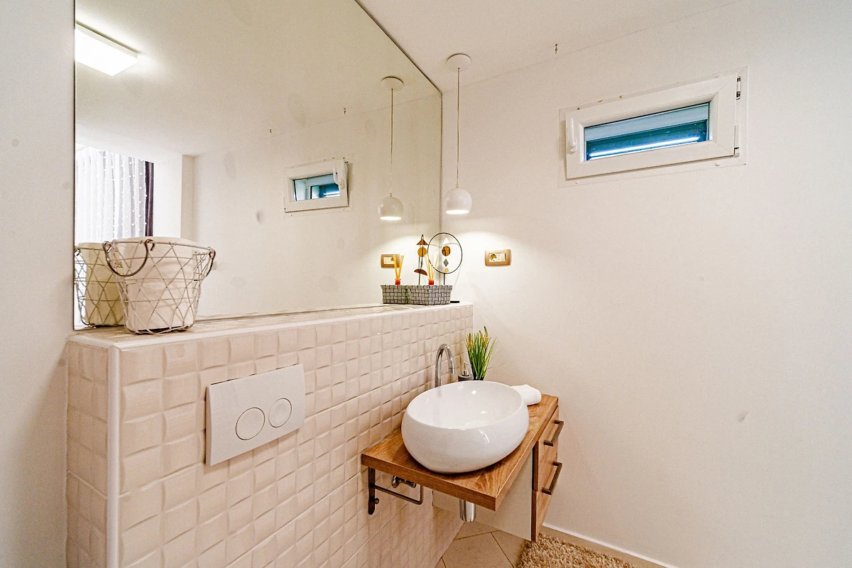 Tevens heeft u de beschikking over tuin, tuinmeubilair, terras, wasmachine, strijkijzer, internet (wifi), airconditioning, zwembad privé, openlucht parkeerplaats in in het zelfde gebouw, Televisie, satelliet tv.