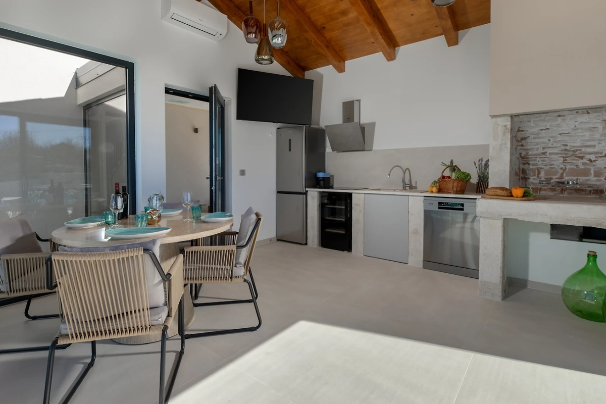 De woning bevindt zich op 850 m van het zandstrand "Trget", 14 km van het dorp "Labin", 14 km van de supermarkt "Labin", 36 km van de luchthaven "Pula".