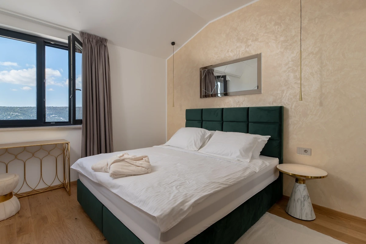 De villa in Trget heeft 2 slaapkamer(s) en kan gereserveerd worden tot 4 personen.