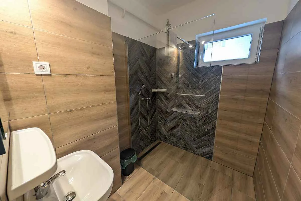 Uw vakantiewoning: Uw vakantiewoning beslaat 1 verdieping, 3 kamers (daarvan 2 slaapkamers), is 70 m² groot en is geschikt voor maximaal 5 personen. Een airconditioning zorgt op hete dagen voor een aangename temperatuur. Roken is binnen niet toegestaan. De ingang is im Erdgeschoss en leidt via de 10 m² groot terras direct in de woon/slaapkamer. De indeling van de kamers is als volgt: woon/slaapkamer met zithoek en TV. badkamer met douche, 1 wastafel en venster. aparte WC met 1 wastafel, WC en venster. slaapkamer met 1 tweepersoonsbed en 1 extra bed. slaapkamer met 1 tweepersoonsbed. keuken met eethoek, gasfornuis (2 pitten), koelkast (120 l, vriesvak), magnetron en koffiemachine. De eethoek heeft plaats voor 4 personen.