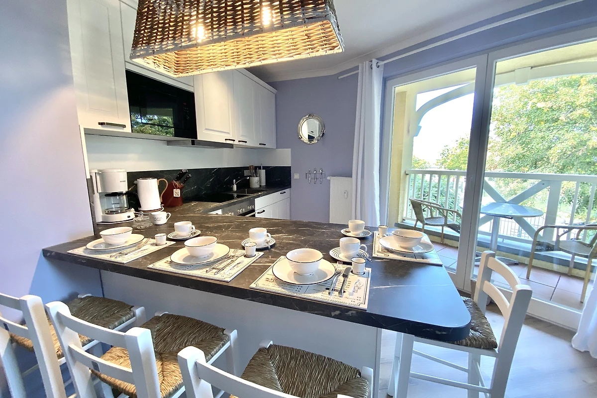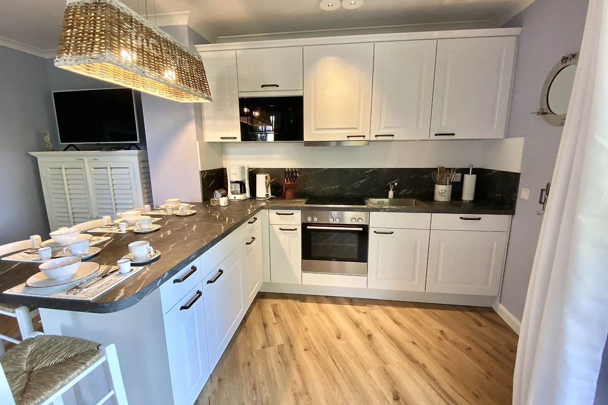 keuken met vaatwasser, koelkast met vriesvak, keramische kookplaat met 4 zones, oven, magnetron met grill,