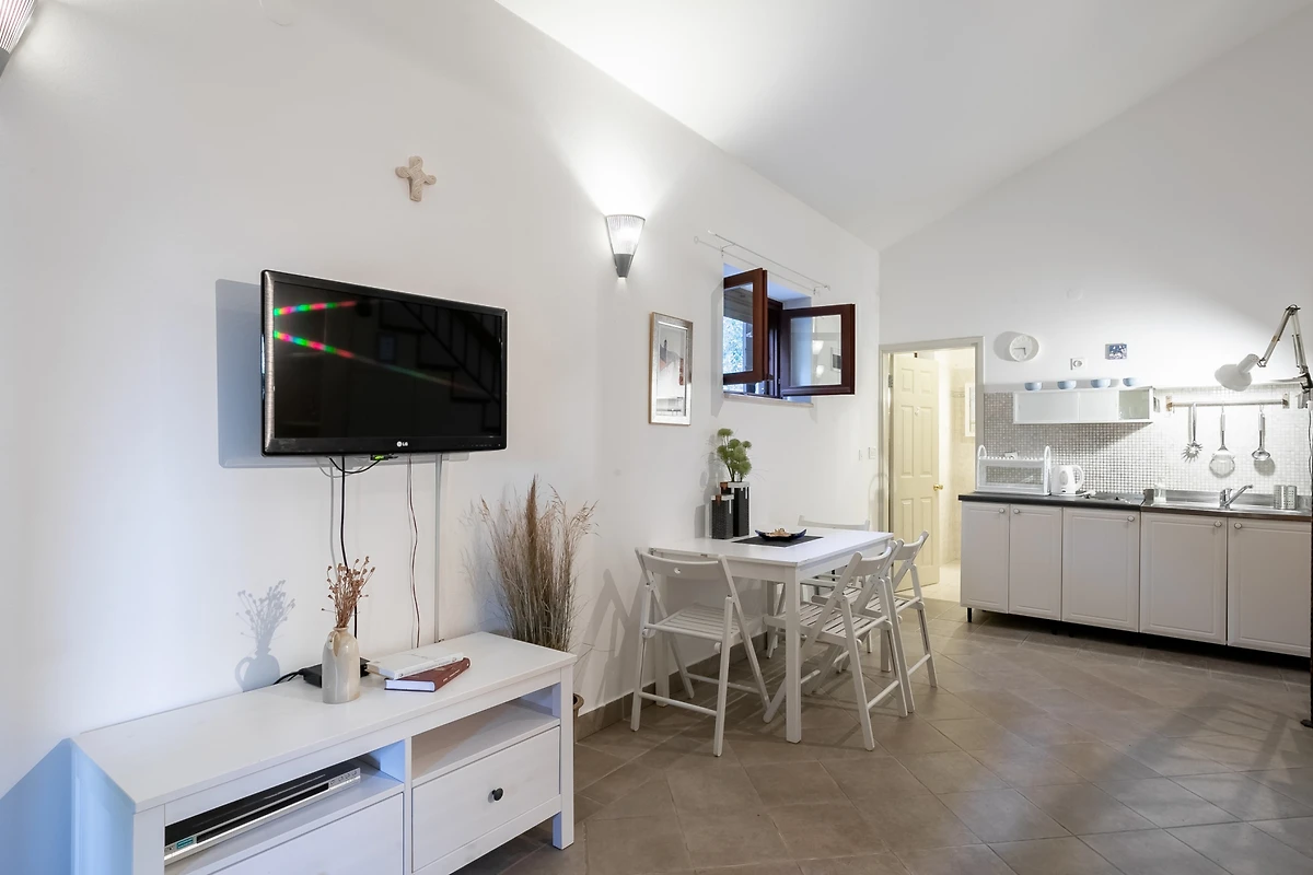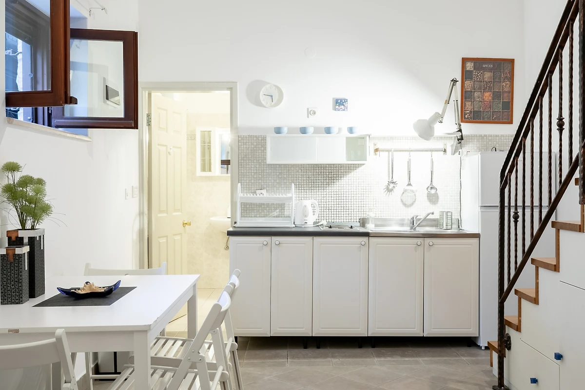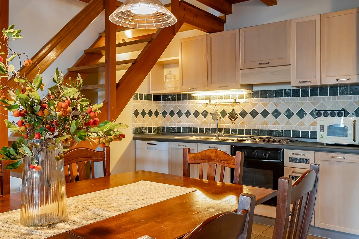 De open keuken, is uitgerust met oven, vriezer, vaatwasmachine, servies/bestek, keukengerei, koffiezetapparaat en broodrooster.