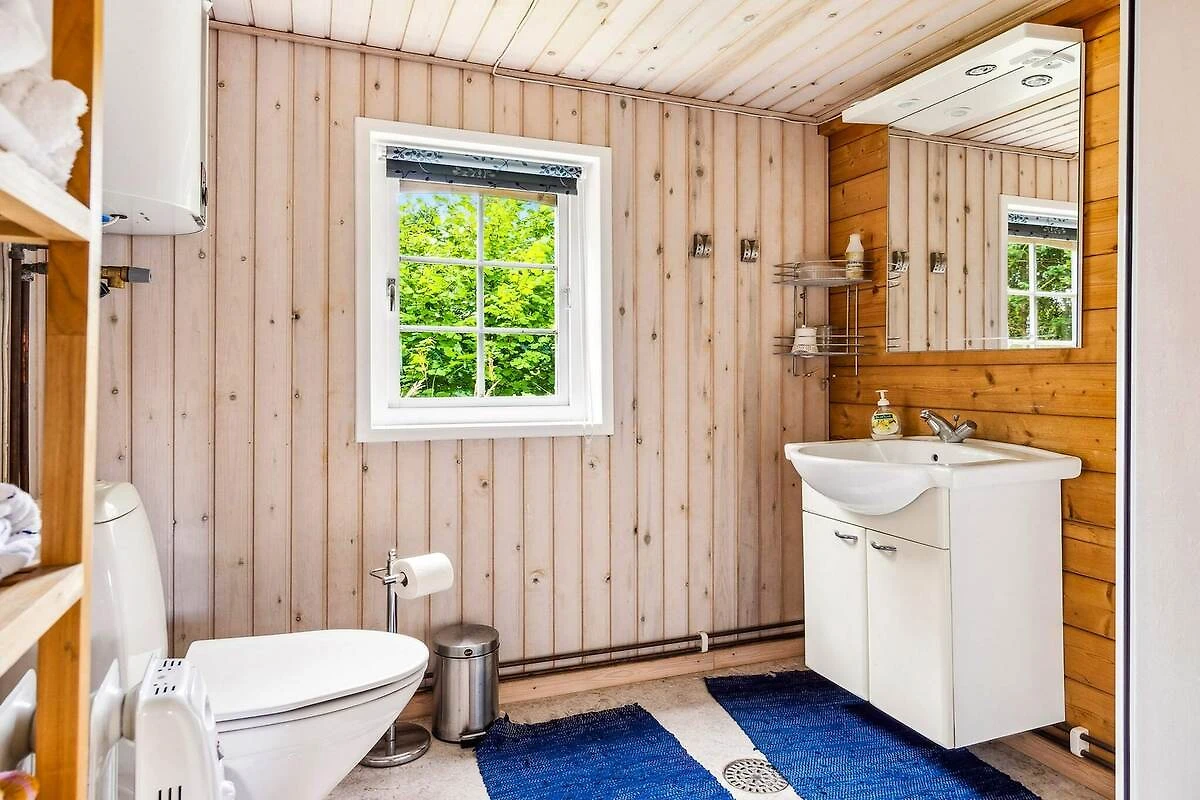 , keuken(fornuis(2 kookplaten), koffiezetapparaat, oven, magnetron, afwasmachine, koelkast, koel-/vriescombinatie), woon/slaapkamer(TV(Deense TV zenders (DR1 en TV2), noorse TV zenders (NRK en TV2), zweedse TV zenders), CD-speler), slaapkamer(2-pers. bed), slaapkamer(1-pers. bed), badkamer(wasbak, douche, toilet, wasmachine), badkamer(wasbak, douche, toilet), carport, 1-pers. vouwbed, verwarming(elektrisch), terras, tuin, lucht-lucht warmtepomp