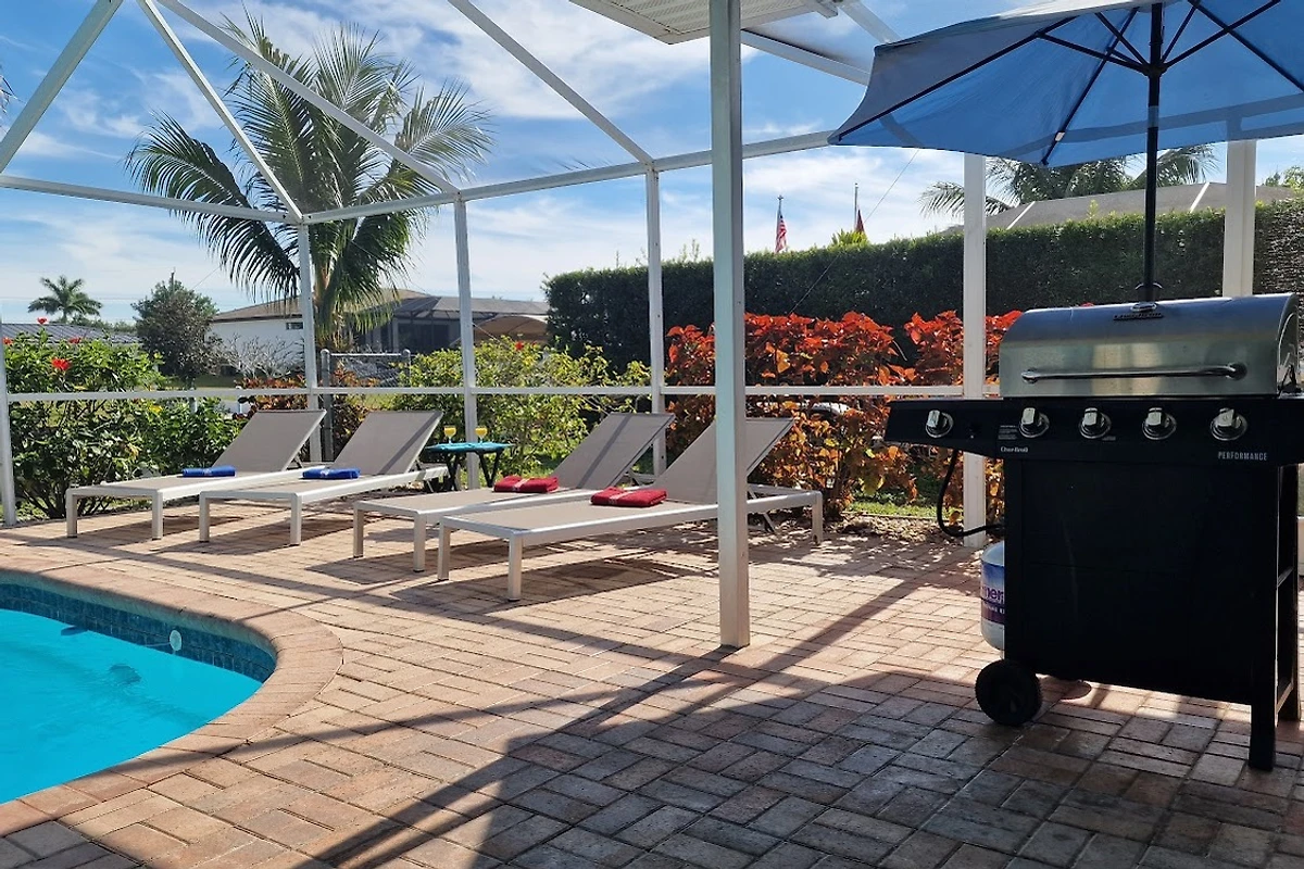 Geniet van uw Florida-vakantie in de volledig gerenoveerde en liefdevol ingerichte Villa Melina in Cape Coral aan de centrale Golfkust! Dit ruime vakantiehuis biedt op 180 m² plaats aan maximaal 6 gasten. Geniet van ontspannen uren in de verzorgde tuin met schaduwrijke palmen, op het terras aan het water of op het terras, waar een BBQ-grill klaarstaat voor gezellige avonden. Het privézwembad, indien gewenst elektrisch verwarmd, nodigt uit tot verfrissende momenten. De villa is volledig voorzien van airconditioning en combineert comfort met functionaliteit: de moderne keuken is uitgerust met een vaatwasser, magnetron, waterkoker en koffiezetapparaat – alles wat u nodig heeft voor een zorgeloos verblijf. Schoon beddengoed is aanwezig, evenals een wasmachine en een droger. Voor entertainment zorgen tv en gratis wifi.