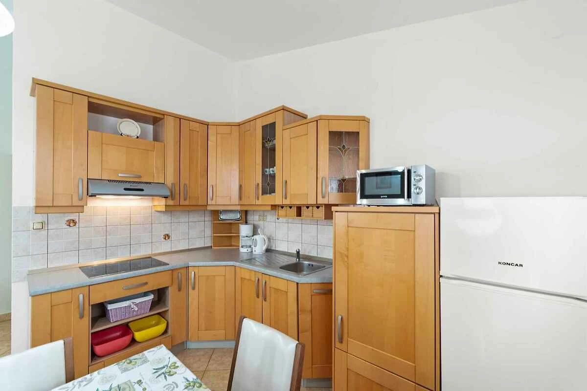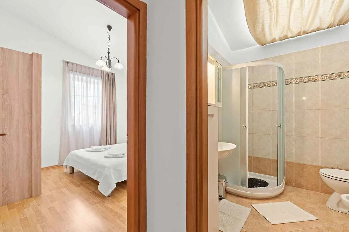Ligging: Tar/Poreč. De vakantiewoning ligt in een appartementenhuis en is functioneel ingericht. De toegangsweg naar het terrein gaat via een geasfalteerde zijstraat. Openbare parkeerplaatsen zijn op de straat voor het huis. De dichtsbijzijnde winkels zijn op 100 m afstand, restaurant 100 m en centrum 100 m. vliegveld in Pula 55 km. bank in Teer 100 m.