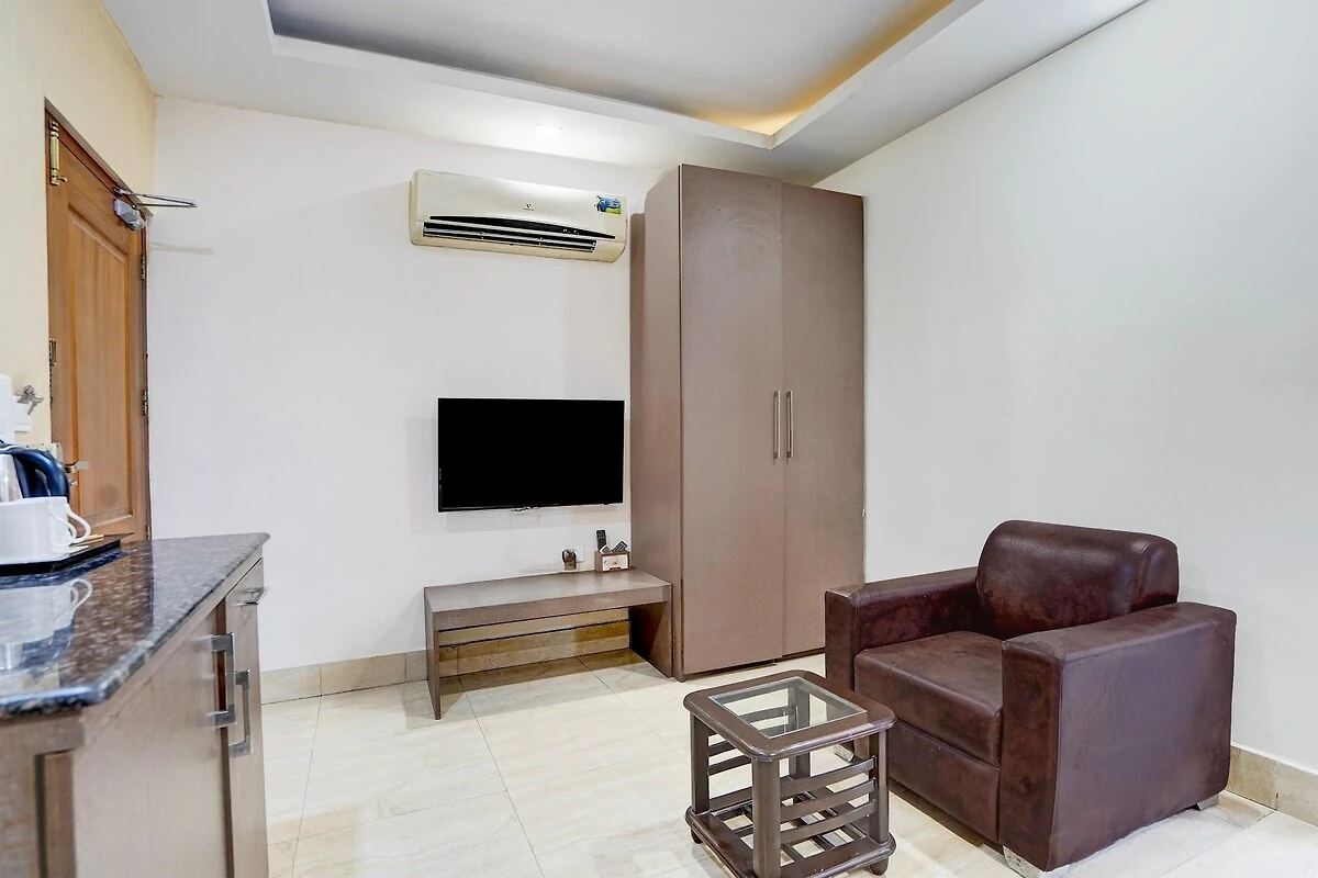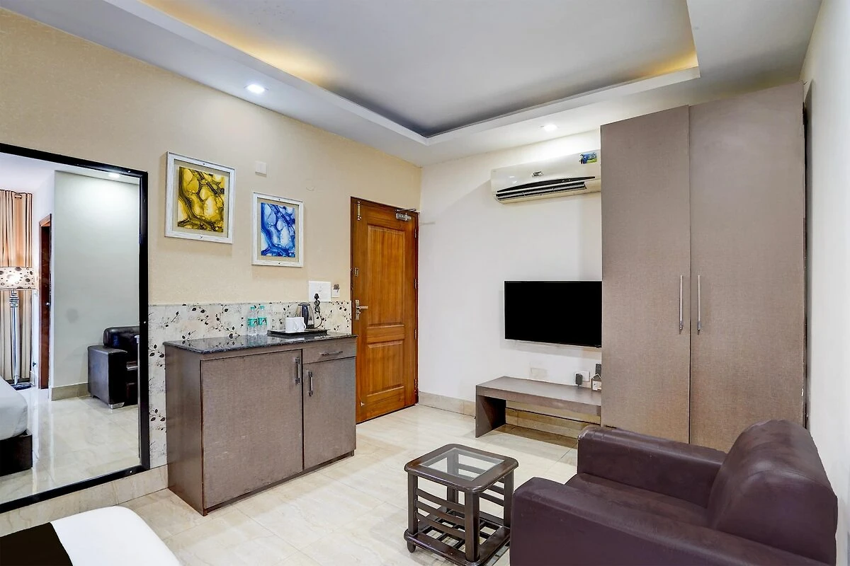Comfortabele accommodatie: Townhouse Oak ONGC Crossway, voorheen Hotel Gold Stone Comfort in Dehradun, biedt familiekamers met airconditioning, een eigen badkamer, een bureau en gratis toiletartikelen. Elke kamer is voorzien van een tv, een kledingkast en een tegelvloer.