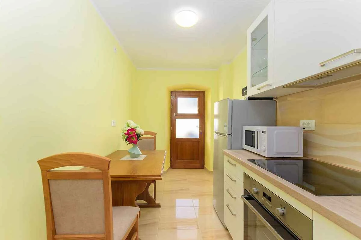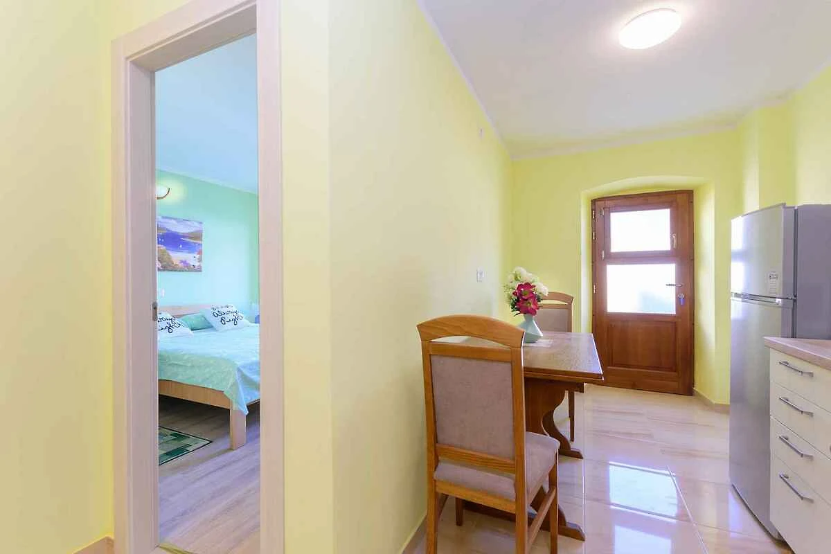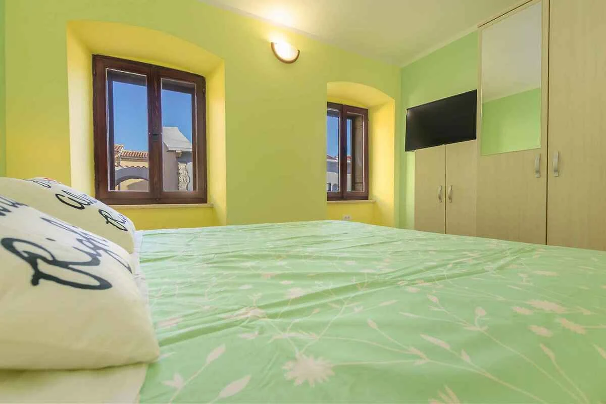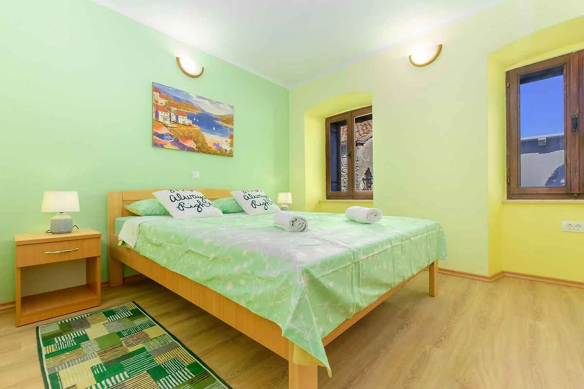 Ligging: Pićan. De vakantiewoning ligt in een appartementenhuis en is functioneel en in lokale stijl ingericht. Het grondstuk is aan de rand van de plaats. Deze plaats is populair vanwege het uitzicht op de bergen en het ligt op een rustige plek. Bij het huis zijn U 2 parkeerplaatsen voor meerdere auto's beschikbaar. Openbare parkeerplaatsen zijn op de straat voor het huis. De dichtsbijzijnde winkels zijn op 3,8 km afstand, restaurant 2,4 km en centrum 100 m. vliegveld in Pula 44 km.