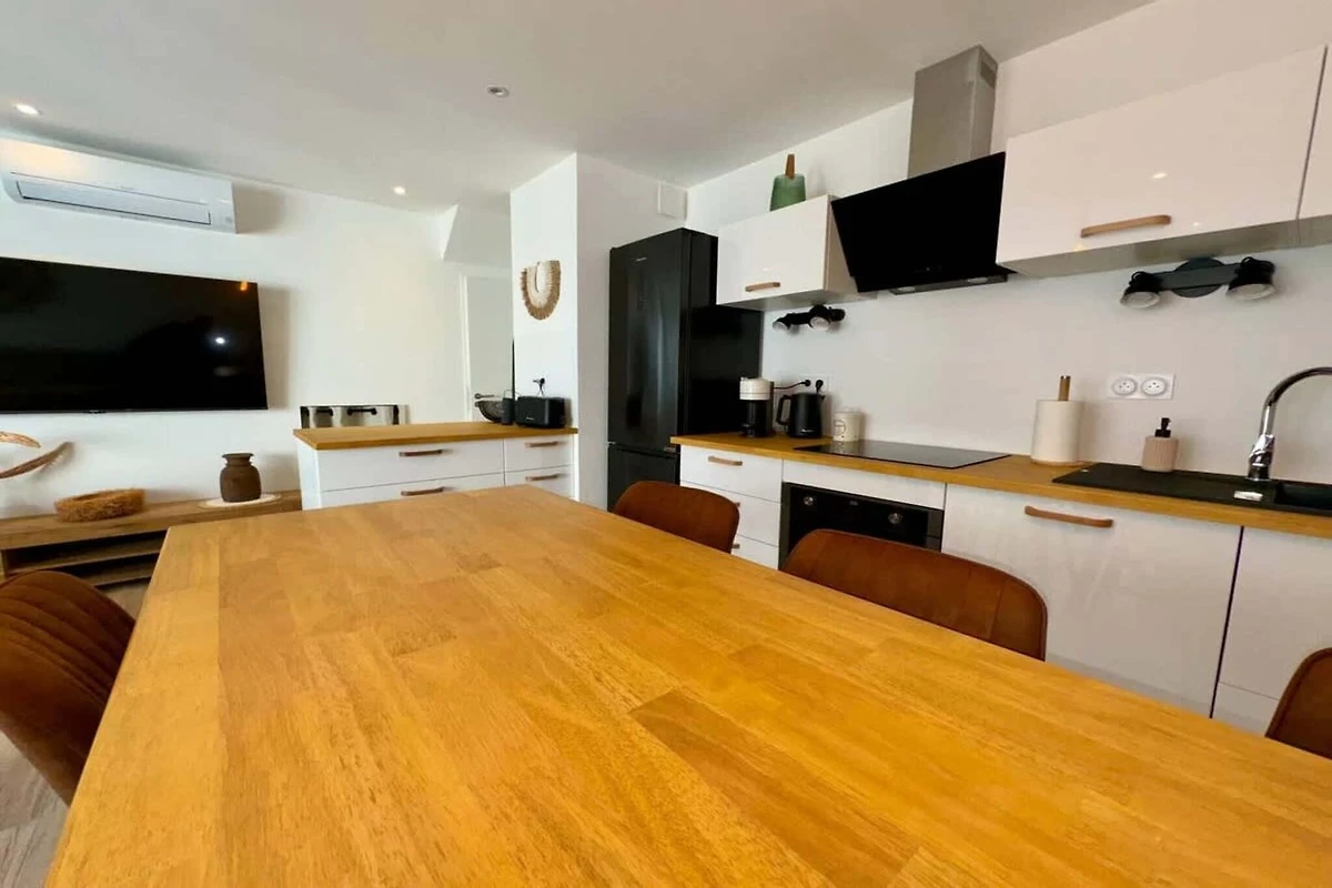 Buiten is het privéterras perfect om te genieten van maaltijden in de zon of een avondbarbecue. Alles is ontworpen voor een ontspannen en stressvrij verblijf: beddengoed en handdoeken worden verstrekt en de bedden zijn opgemaakt bij aankomst, wifi is inbegrepen en de eindschoonmaak wordt verzorgd. Met het strand, de haven en de lokale markt op loopafstand is deze villa de ideale uitvalsbasis voor gezinnen of vrienden die op zoek zijn naar een zonnige, zorgeloze vakantie in Valras-Plage.