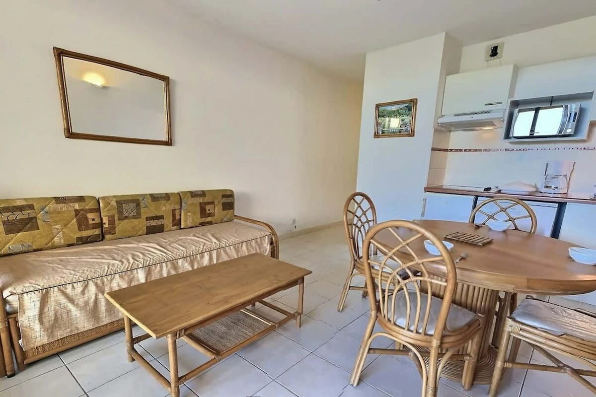 Geniet van een zonnige vakantie in dit appartement op de begane grond aan Alizéa Beach, op slechts 50 meter van de zee. Perfect voor gezinnen. Het appartement beschikt over twee slaapkamers – één met een tweepersoonsbed en één met een stapelbed – een lichte woon-/eetkamer met een slaapbank, een volledig uitgeruste keuken en een badkamer met een apart toilet. Stap buiten op uw eigen terras en geniet van de mediterrane sfeer.