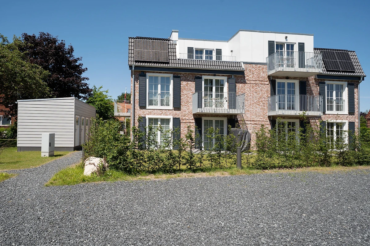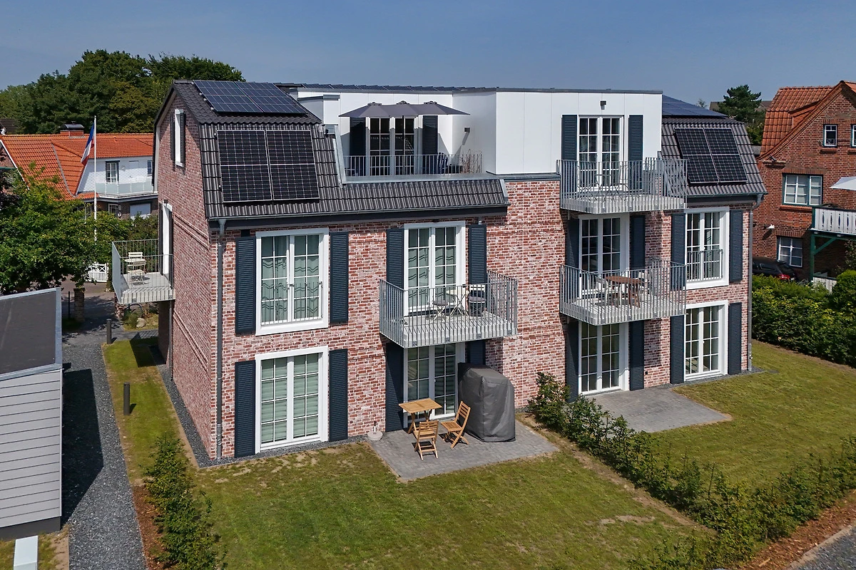 Wunderschöne, helle, geräumige und moderne Ferienwohnung mit schöner Raumaufteilung. Zwei Balkone! Schöner runder Esstisch mit 4 Stühlen. Leider nur eine kleine Couch aber dafür sehr gemütliche Betten. Das Haus ist sehr gut gedämmt und man hört die anderen Bewohner garnicht. Was leider fehlte: Rollos oder Vorhänge, die richtig abdunkeln. Auch nachts ist es draußen hell, da im Hinterhof Gartenlaternen leuchten und man hört bei geöffnetem Fenster eine permanente Lüftung von der Wärmepumpe und der Lüftungsanlage. Nicht schlimm, aber man nimmt es halt war (ähnlich dem Geräusch einer Standheizung vom Auto) Die Nähe zummstrand ist toll! Keine 5 Minuten. Auch der böcker ist ums Eck. Wir hatten eine tolle Zeit.