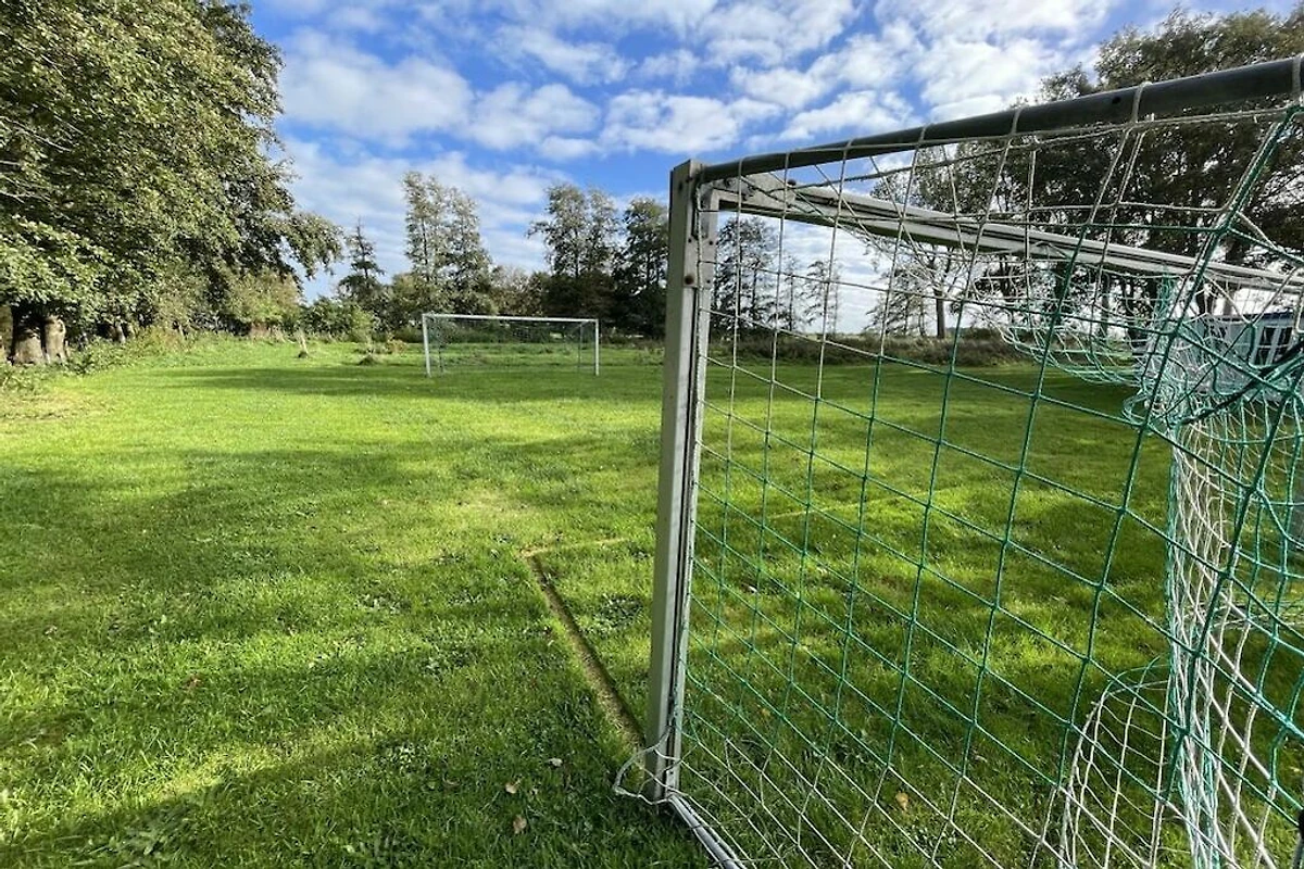 De tuin is bereikbaar via de nooduitgang of de trap aan de voorzijde en kan gedeeld worden. Er is 4000 m² gazon beschikbaar. Er zijn voetbaldoelen beschikbaar.