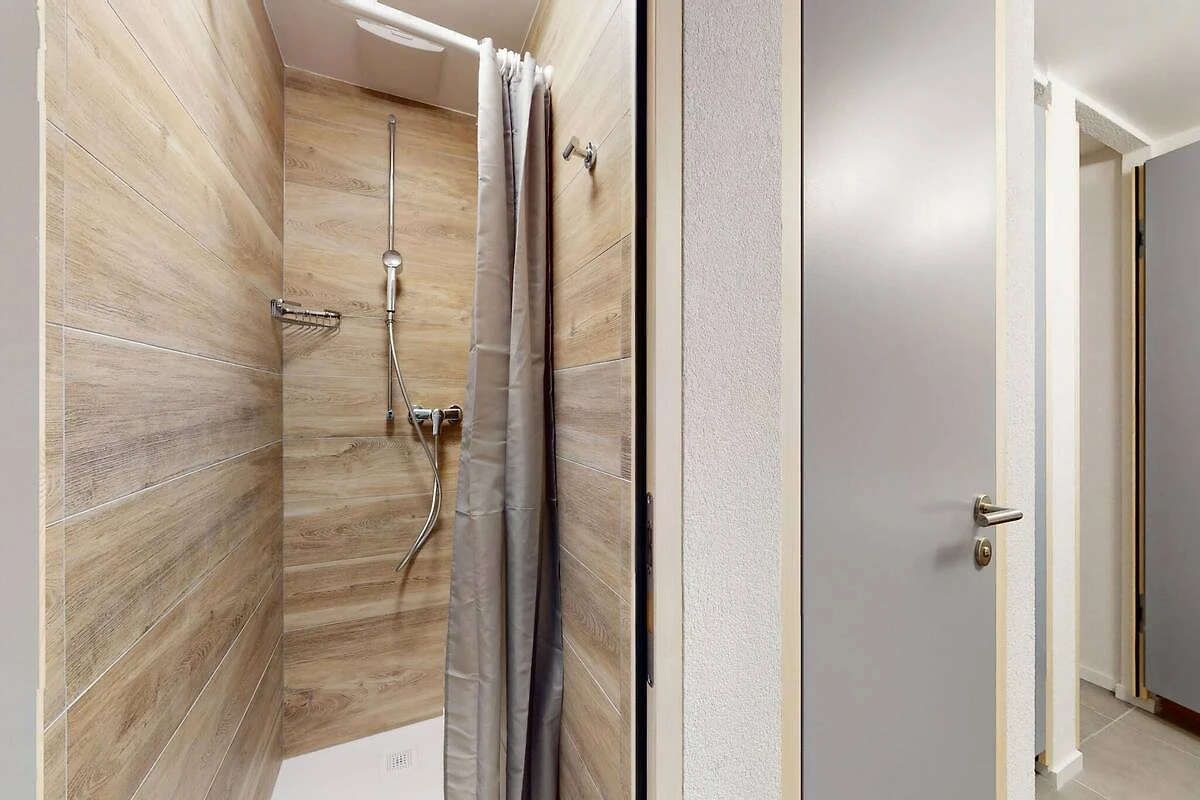 Het chalet biedt handige gedeelde faciliteiten, waaronder doucheruimtes voor mannen en vrouwen met elk twee wastafels, twee douches en twee toiletten. Met parkeergelegenheid voor maximaal drie auto's, een wasruimte en een skiruimte, heeft u alles wat u nodig heeft voor een ontspannen verblijf. De kamers zijn voorzien van comfortabele meubels en sommige kamers hebben een balkon om te genieten van de omliggende natuur.