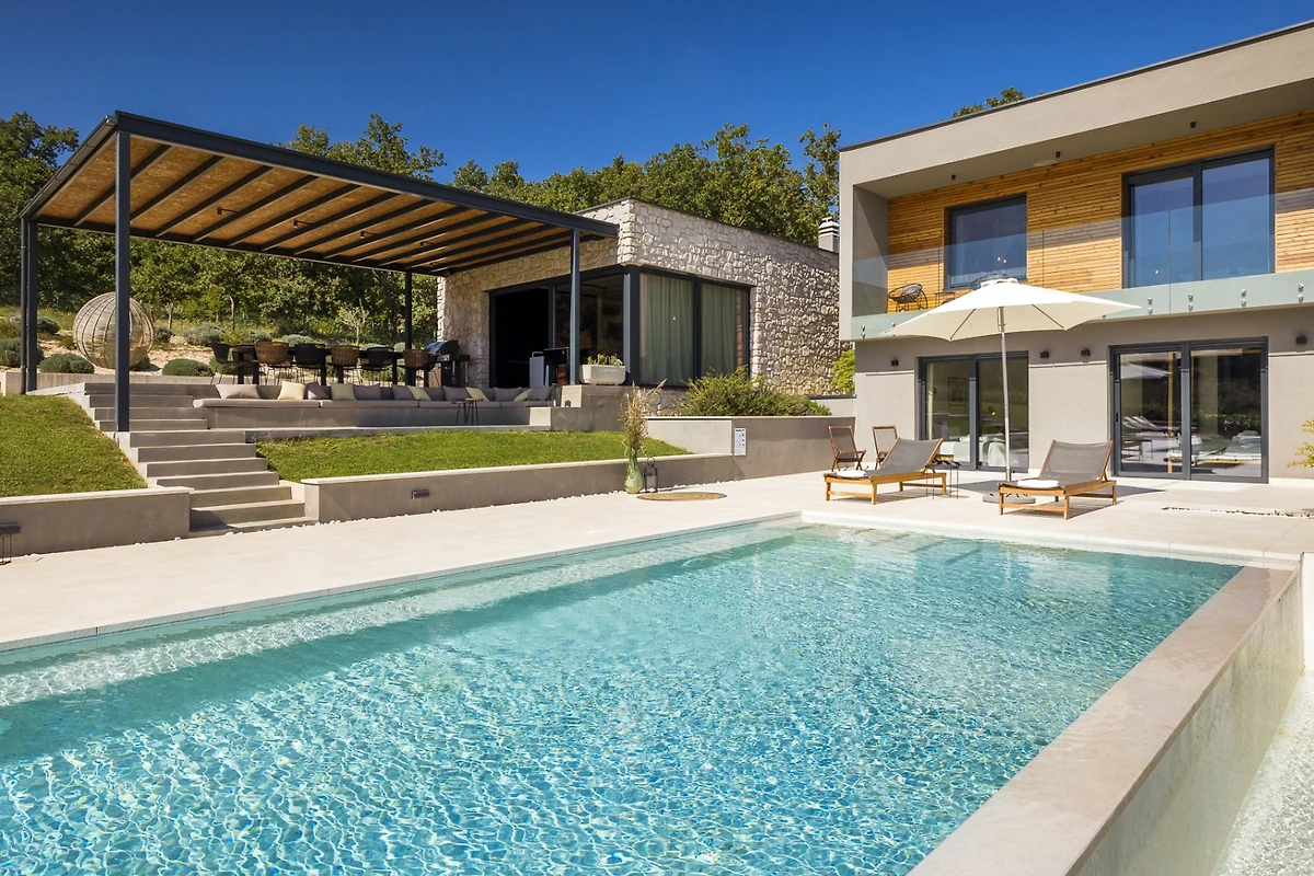 De villa in Pazin heeft 6 slaapkamer(s) en kan gereserveerd worden tot 14 personen.