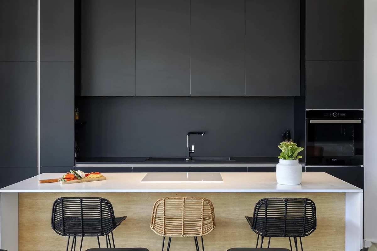 De open keuken, met inductie kookplaat, is uitgerust met koelkast, magnetron, oven, vriezer, vaatwasmachine, servies/bestek, keukengerei, koffiezetapparaat en broodrooster.