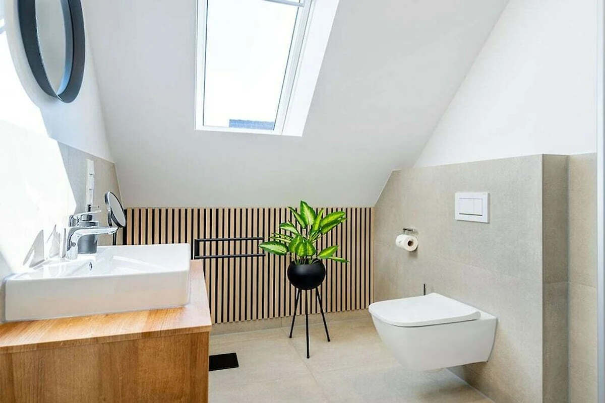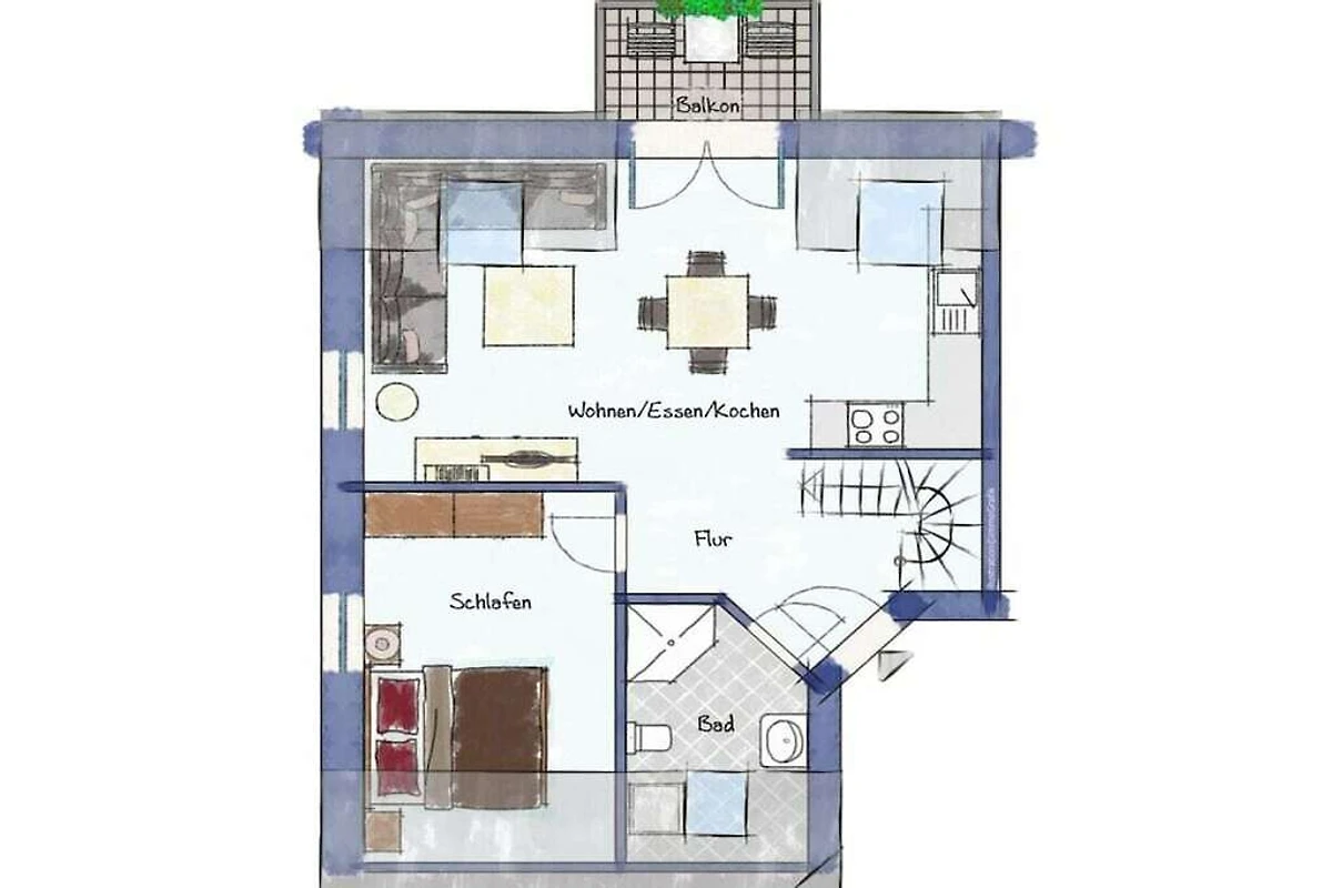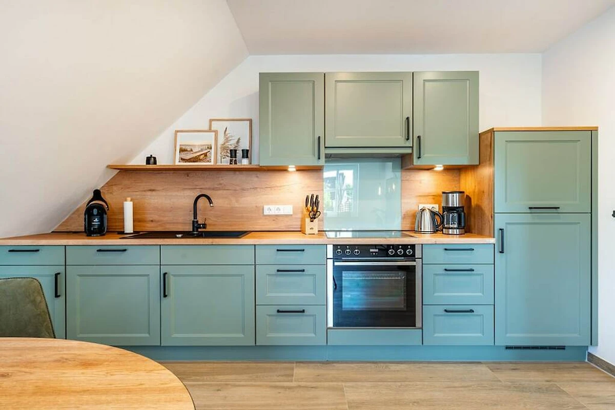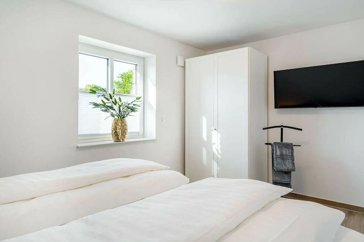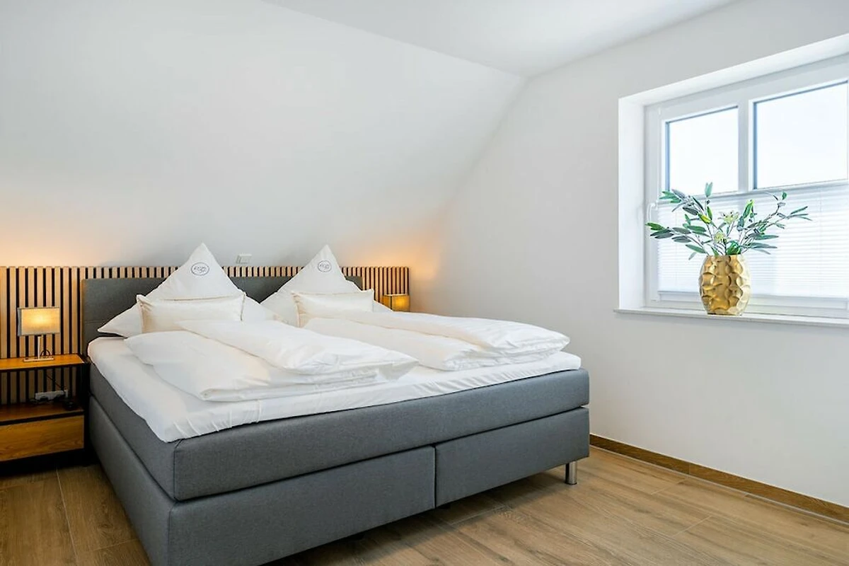 Breng uw vakantie door in het nieuwe appartement FriesenKOJE 3 – met direct uitzicht op de "groene molen". Het moderne, hoogwaardig ingerichte appartement beschikt over een volledig uitgeruste keuken, een ruime en lichte woonkamer, een slaapkamer met een comfortabel boxspringbed en een badkamer met daglicht en inloopdouche. Het appartement is tevens voorzien van vloerverwarming. Geniet van uw vrije tijd op het comfortabele balkonmeubilair op een rustige locatie aan de Edzard-Cirksena-Straße.