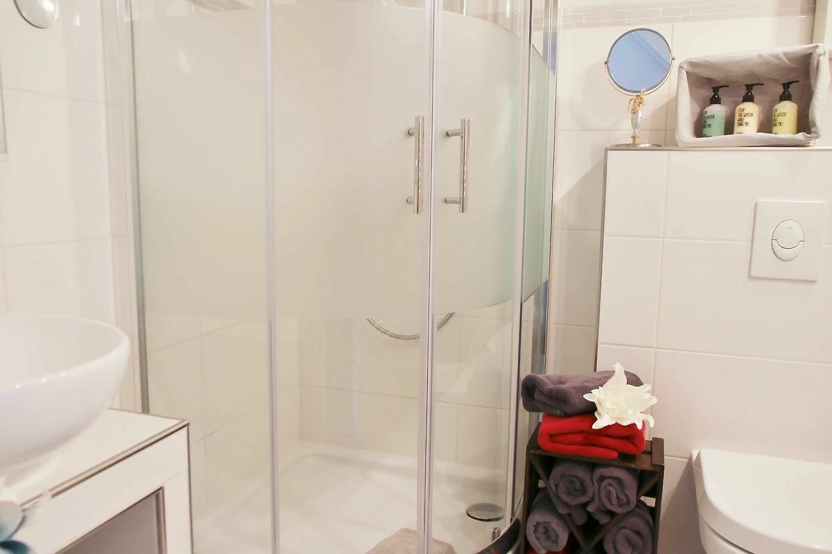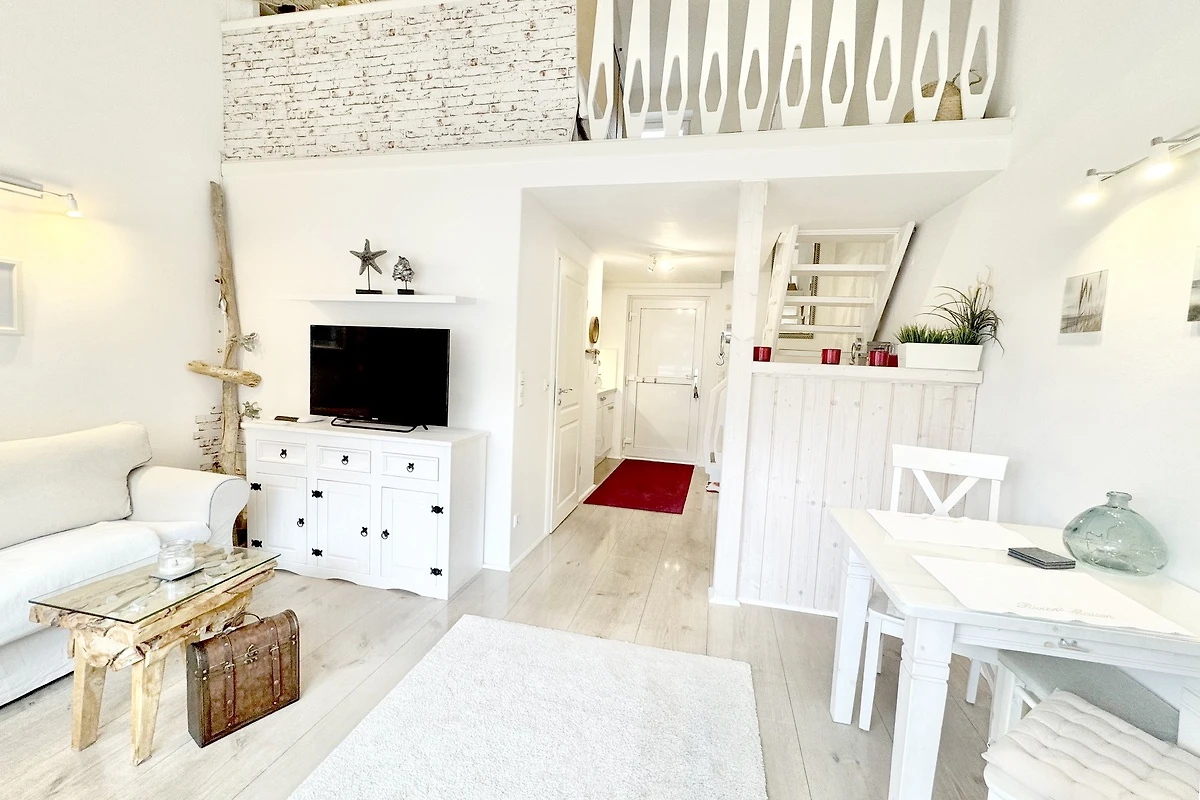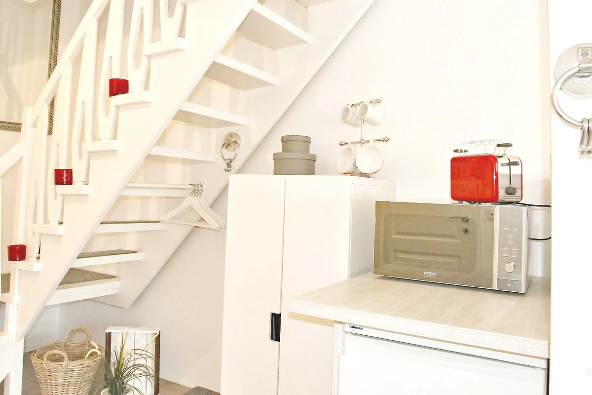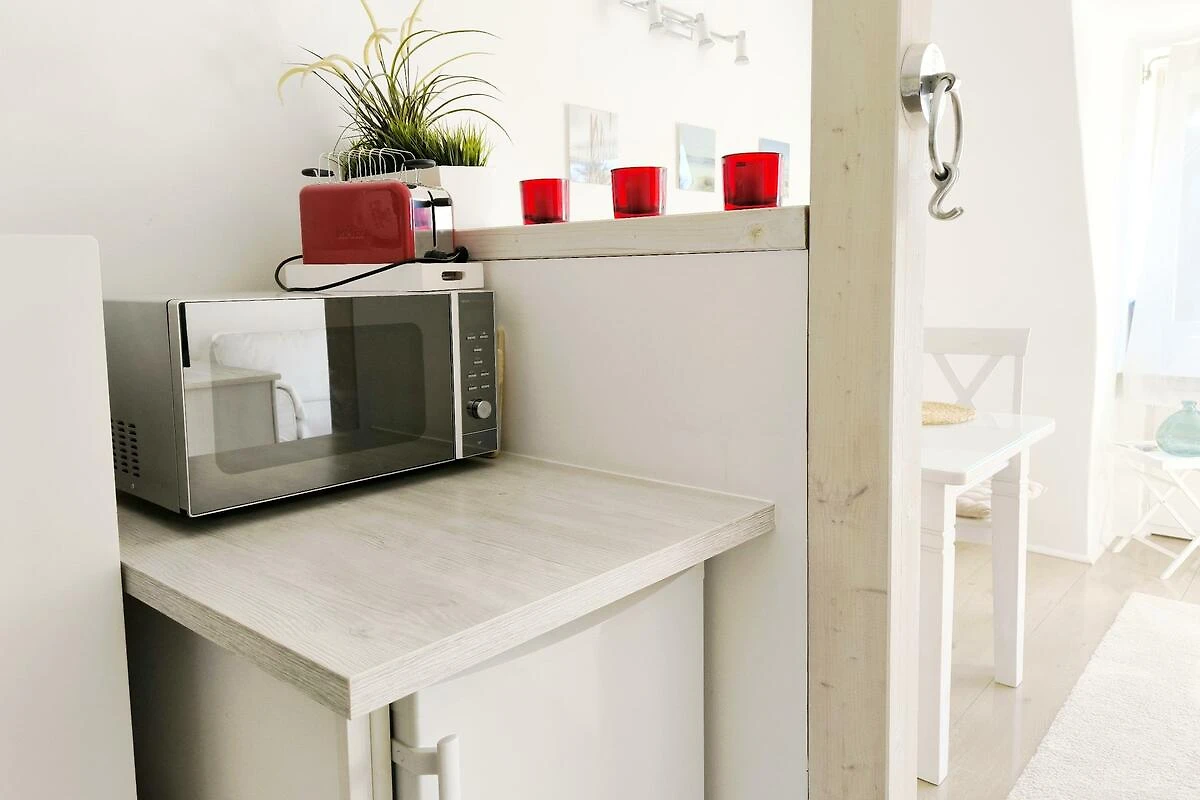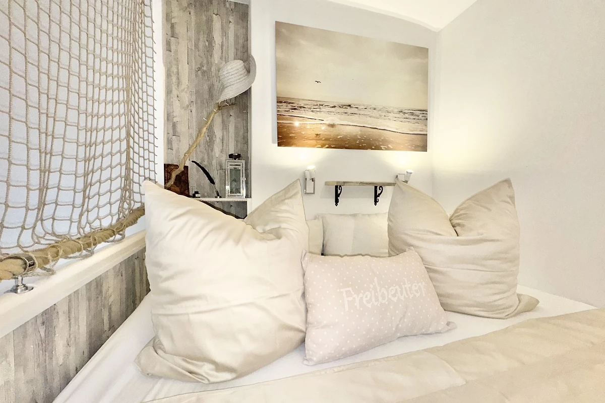 Het appartement is niet alleen functioneel, maar ook esthetisch aantrekkelijk. Licht hout en zachte verlichting zorgen voor een warme sfeer, terwijl grote ramen de ruimte met natuurlijk licht overspoelen. Een kleine, maar fijne eettafel biedt plaats voor gezamenlijke maaltijden en het verzorgde interieur zorgt voor een algeheel prettig woongevoel. Breng uw volgende vakantie door in Freibeuter App. nr. 27 en geniet van comfort en stijl op een van de mooiste locaties van Scharbeutz.