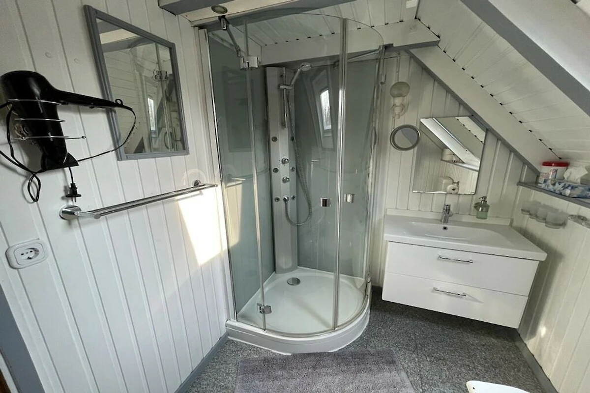 Tussenetage: (woonkamer(, TV, TV, CD-speler, stereo-installatie), slaapkamer(, , 2-pers. bed, TV, TV), badkamer(, toilet, douche, wastafel, verwarming, haardroger), relaxruimte(, sauna, outdoor shower, hottub, zwembad), berging(, wasdroger, wasmachine, strijkplank, strijkijzer, Droogkamer))