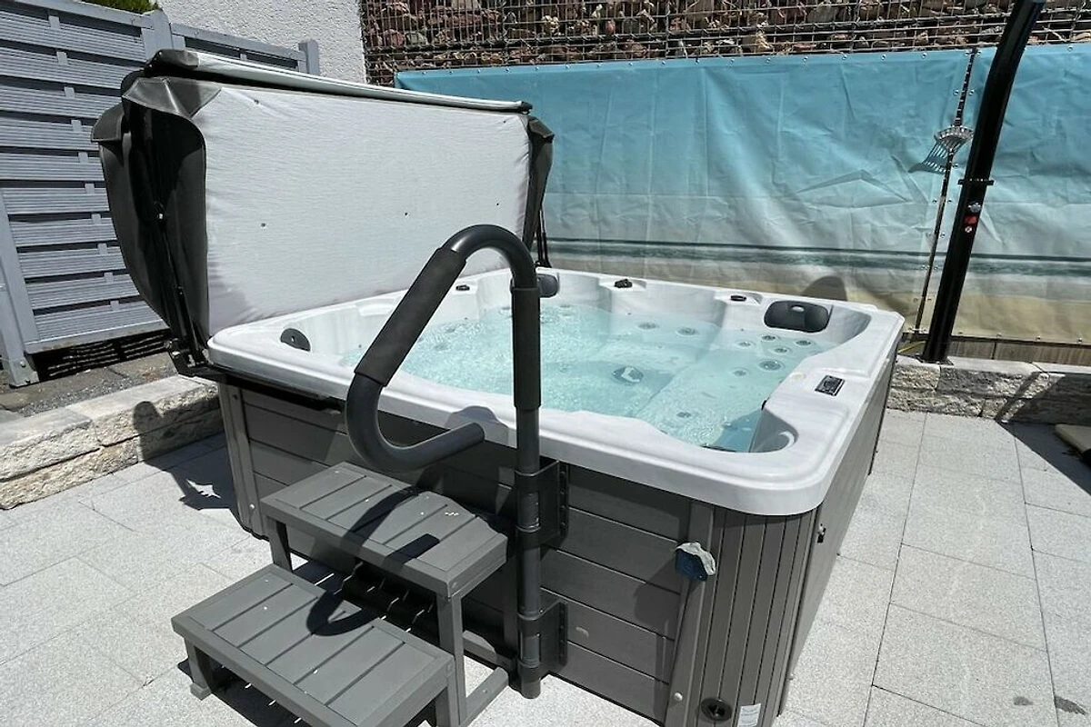 In de tuin vindt u een zwembad en een verwarmd bubbelbad met ledverlichting.