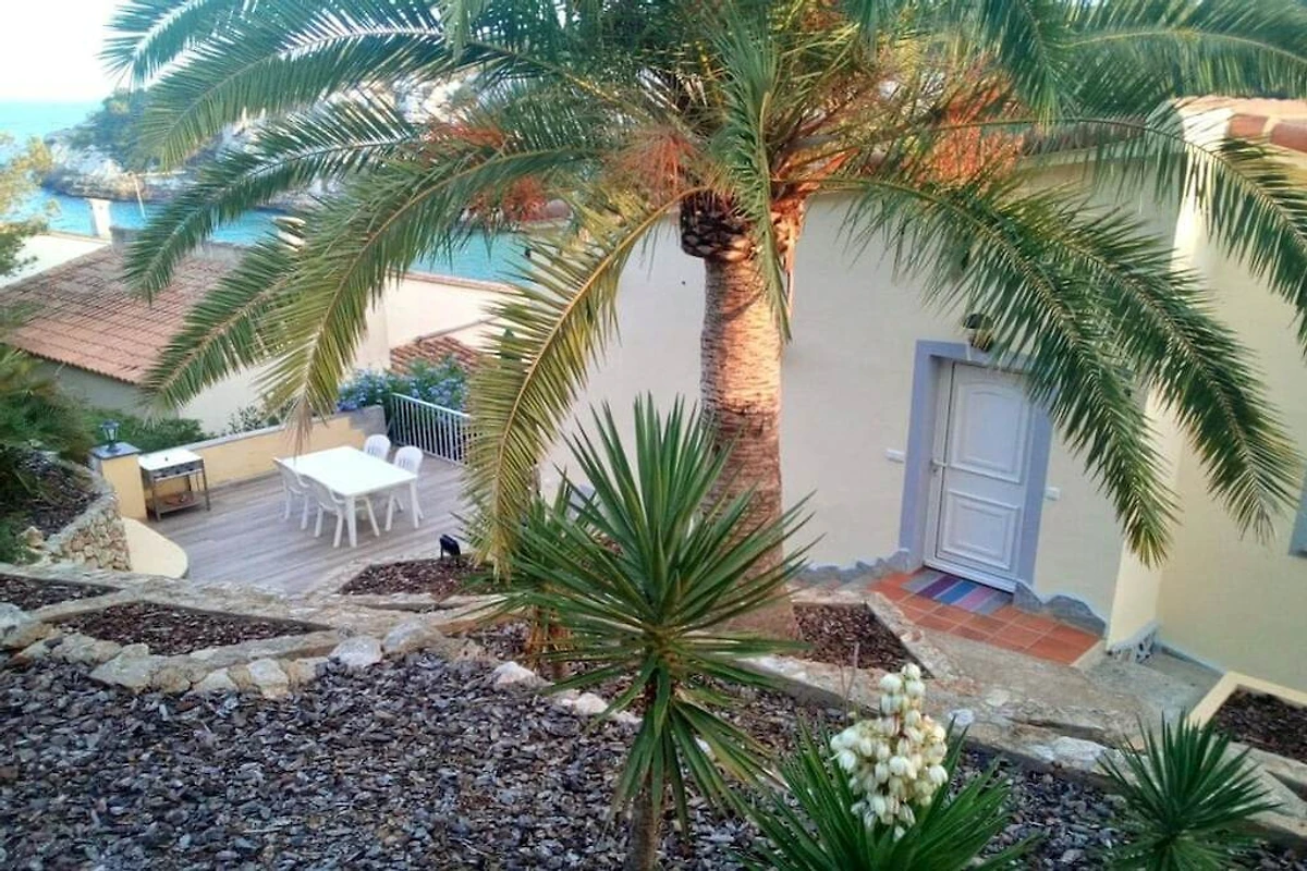 Iets verscholen in de palmentuin bereikt u ons vakantieappartement via het voetgangersgebied en de privé-oprit aan de achterzijde van het pand. De prominente ligging aan de helling van de baai garandeert rust, veiligheid en een uniek panoramisch uitzicht op zee. U vindt een rustig plekje niet alleen op een van de vele zonneterrassen (natuurlijk op het zuiden gericht) en in de liefdevol aangelegde tuinen, maar ook op het zandstrand op slechts een steenworp afstand. Met zijn zeer zacht glooiende oever biedt de baai van Cala Romántica veilig zwemplezier, vooral voor gezinnen.