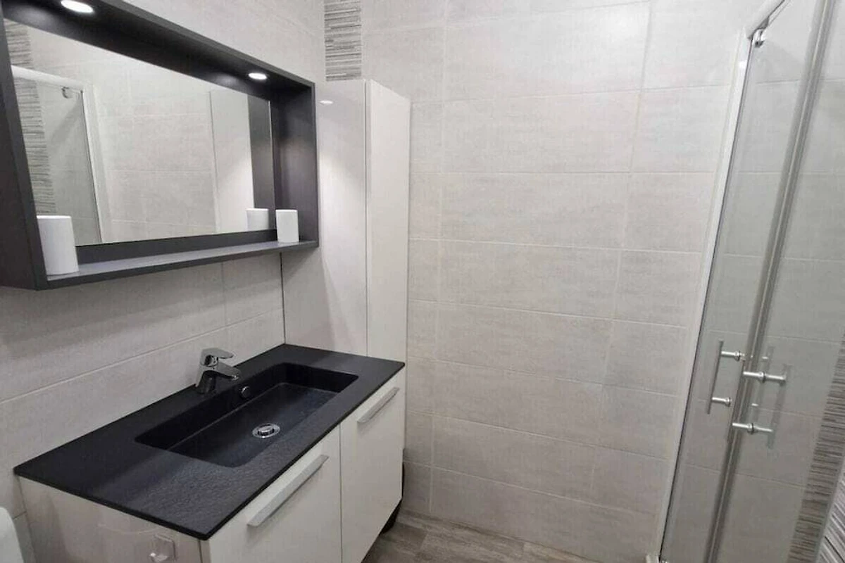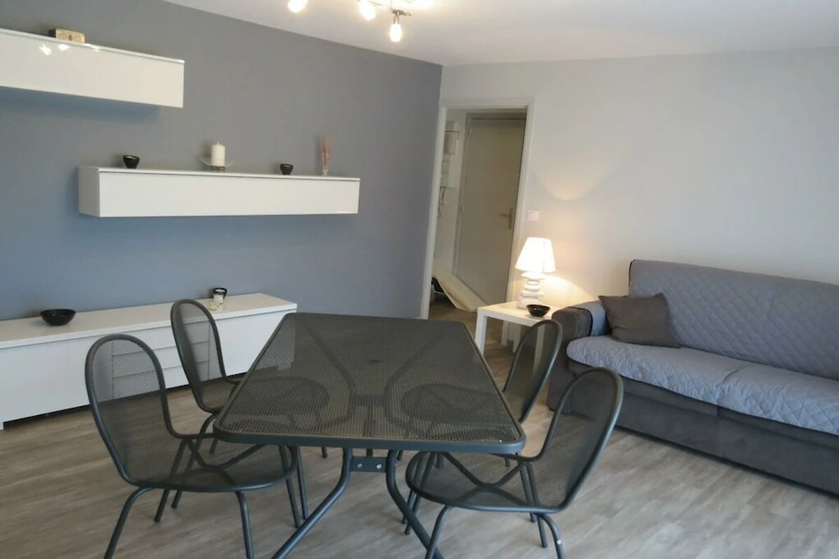 Het appartement is geschikt voor vier personen en beschikt over kasten om uw spullen op te bergen. De woonkamer is voorzien van een slaapbank met een mogelijke breedte van 140 cm en een tv. Er is ook een aparte en goed uitgeruste keuken (2 kookplaten, oven, magnetron, koelkast met vriezer, wasmachine, servies en kasten). De slaapkamer heeft een bed van 160 cm en kasten, een badkamer met een wastafel en een wasmachine, en een apart toilet. Het appartement beschikt ook over een garage met een automatische slagboom. De residentie beschikt over een zwembad.