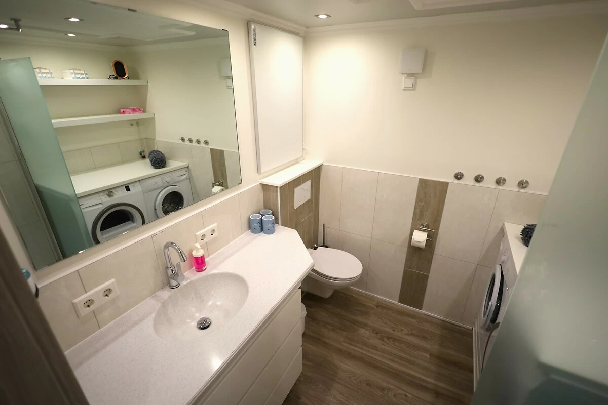 Voor entertainment zorgt een televisie in de ruime woonruimte. Ook aan praktische gemakken is gedacht: Een wasmachine en een wasdroger staan tot uw beschikking, evenals een strijkijzer en een haardroger.