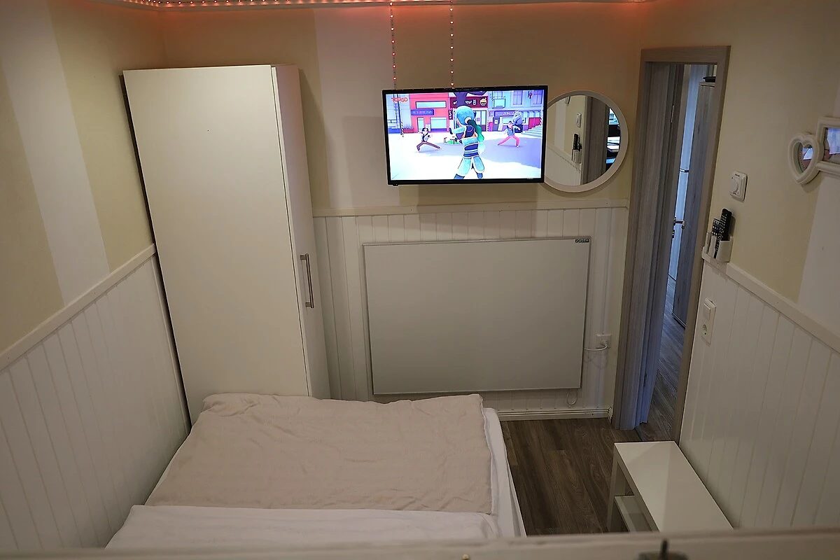 Ervaar het comfort van een woonkamer met een uitnodigende open haard, die op koele avonden voor warmte en een gezellige sfeer zorgt. Het appartement is bovendien uitgerust met airconditioning, die op warme dagen voor aangename koelte zorgt. De volledig uitgeruste kitchenette inclusief vaatwasser, magnetron, waterkoker en koffiezetapparaat laat niets te wensen over en biedt alle gemakken voor zelfverzorgers.