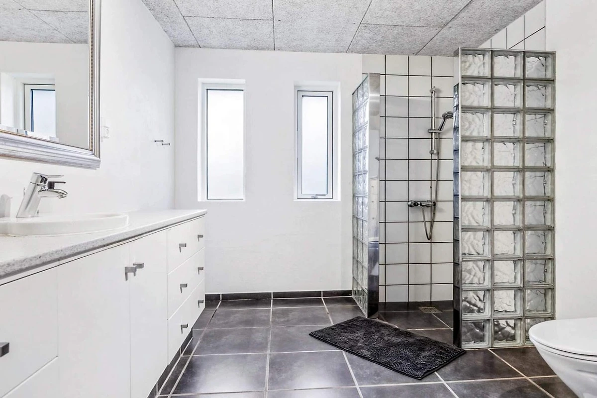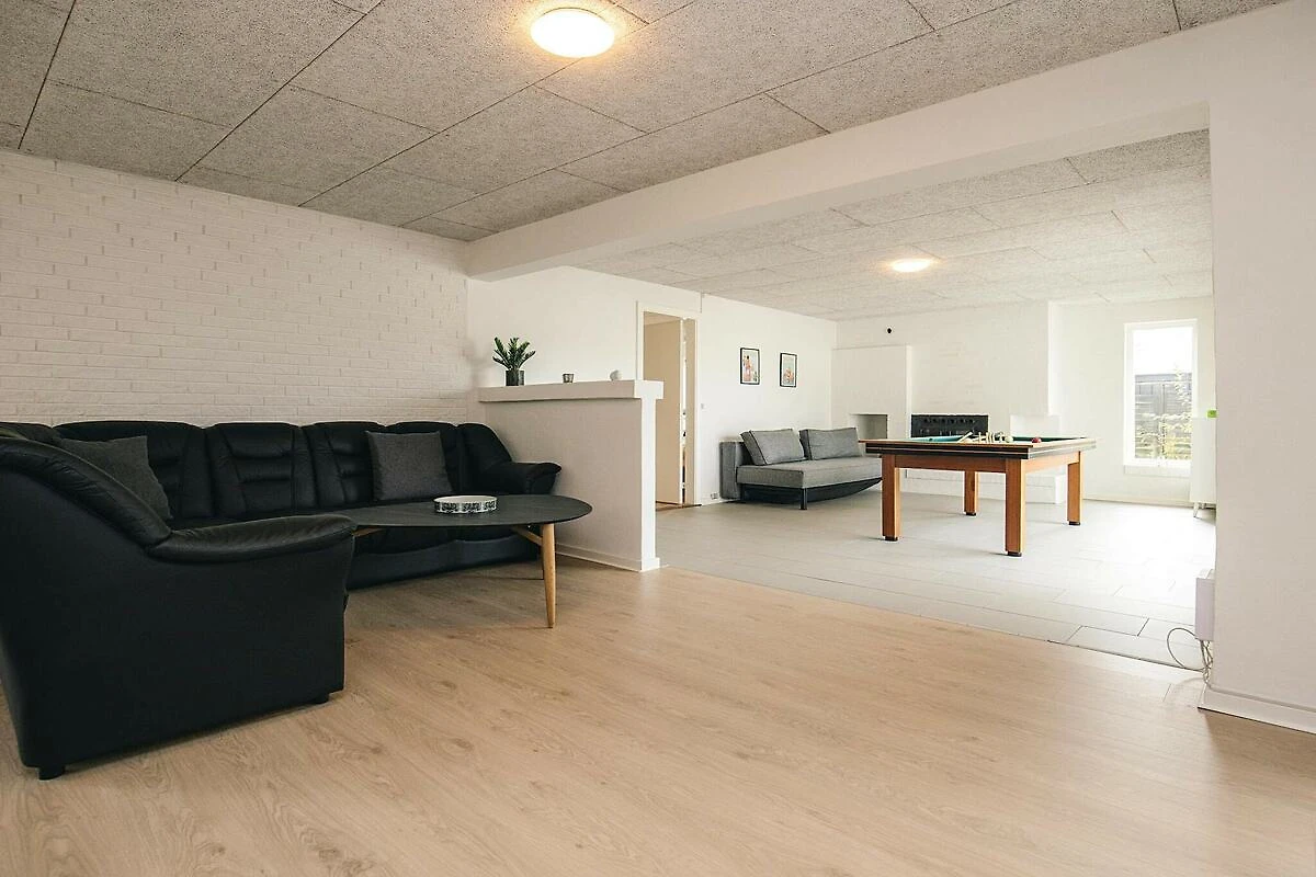 Keuken(fornuis(elektrisch), koffiezetapparaat, magnetron, afwasmachine, koelkast, vriezer(1-59L)), woon/slaapkamer(TV(Deense TV zenders (DR1 en TV2)), open haard, chromecast), slaapkamer(2-pers. bed, 2x stapelbed), slaapkamer(2-pers. bed), slaapkamer(2-pers. bed), slaapkamer(2-pers. bed), badkamer(wasbak, douche, toilet), badkamer(wasbak, douche, toilet), verwarming(CV), biljart