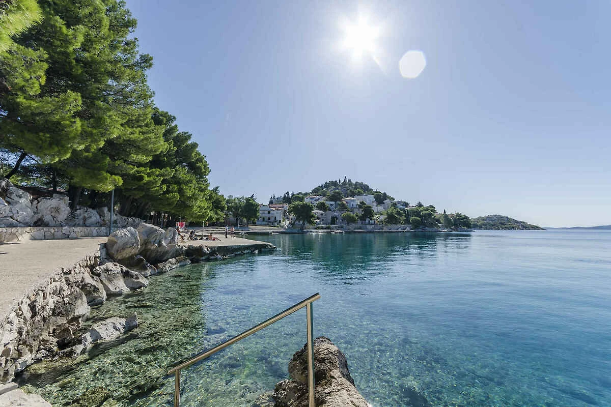 In de zomer: Adriatische Zee in Tribune 90 m, strand met steentjes en rotsen in Tribune, 120 m van uw verblijf vandaan.