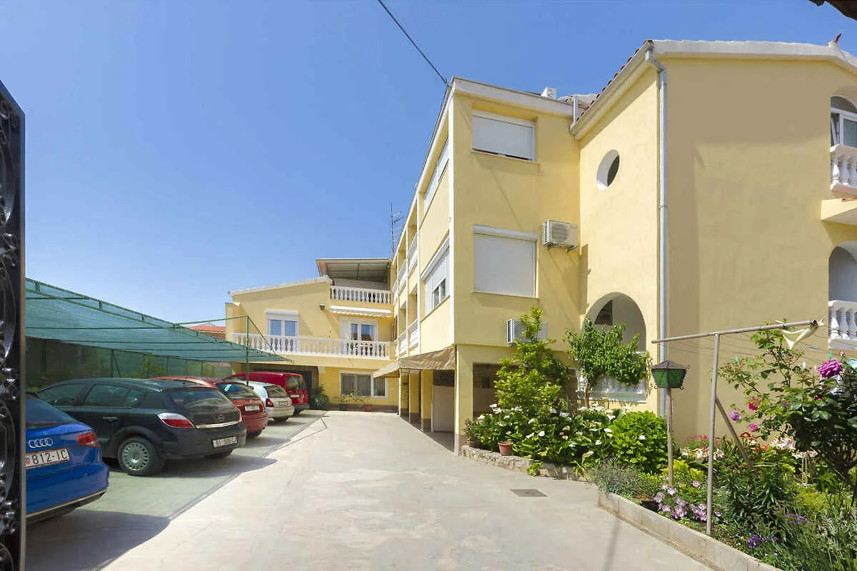 Ligging: Tribune. De vakantiewoning ligt in een appartementenhuis en is functioneel ingericht. Het grondstuk is in een vakantiehuis-gebied in het centrum. Deze plaats is populair vanwege het ligt op een rustige plek. Uitzicht op straat De toegangsweg naar het terrein gaat via een geasfalteerde zijstraat. Openbare parkeerplaatsen zijn op de straat voor het huis. De dichtsbijzijnde winkels zijn op 100 m afstand, restaurant 150 m en centrum 200 m. apotheek in Tribune 500 m. vliegveld in Zadar 65 km.