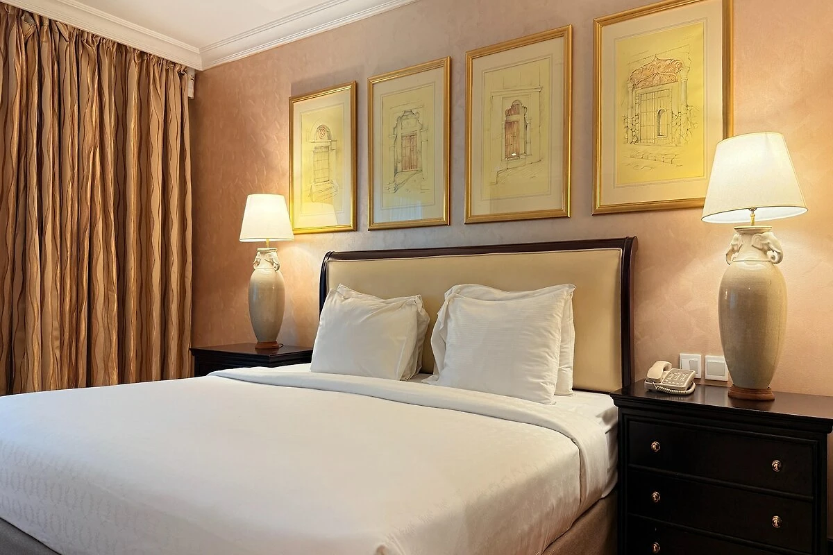 Het hotel biedt verschillende kamercategorieën, zoals Deluxe King, Deluxe Queen, Deluxe Twin, Superior King/Twin, Executive en Junior Suites, Royal Suite en ruime familiekamers. Elke kamer is ontworpen met comfort in gedachten en beschikt over airconditioning, een flatscreen-tv met satellietzenders, een minibar, thee- en koffiefaciliteiten en een eigen badkamer met gratis toiletartikelen. Veel kamers beschikken ook over een bank of zithoek, een bureau en uitzicht op de stad.
