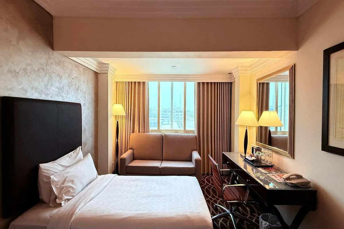 Het hotel biedt verschillende kamercategorieën, zoals Deluxe King, Deluxe Queen, Deluxe Twin, Superior King/Twin, Executive en Junior Suites, Royal Suite en ruime familiekamers. Elke kamer is ontworpen met comfort in gedachten en beschikt over airconditioning, een flatscreen-tv met satellietzenders, een minibar, thee- en koffiefaciliteiten en een eigen badkamer met gratis toiletartikelen. Veel kamers beschikken ook over een bank of zithoek, een bureau en uitzicht op de stad.