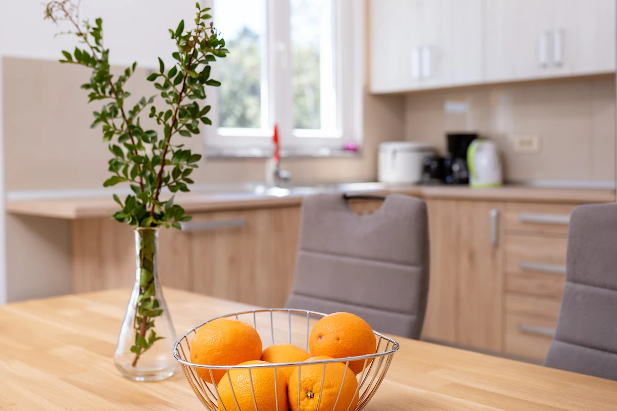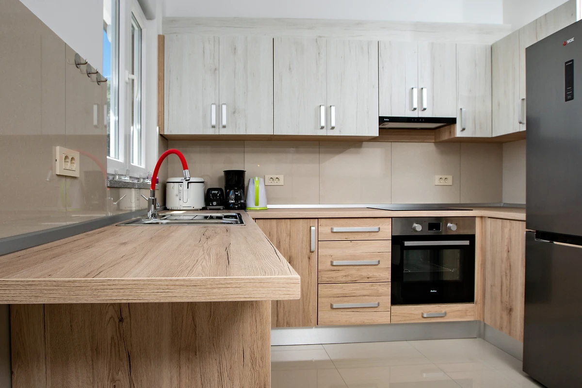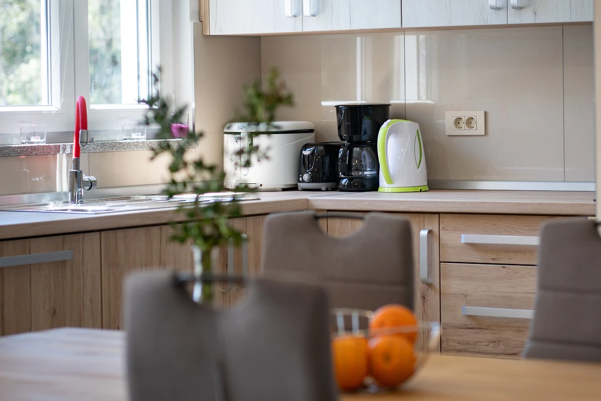 De open keuken, is uitgerust met koelkast, oven, vriezer, vaatwasmachine, servies/bestek, keukengerei, koffiezetapparaat en broodrooster.