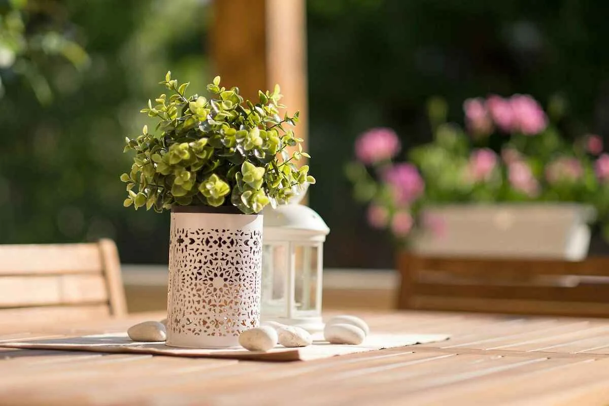 De villa ligt op een 500 m² groot, gesloten terrein met tuin. Het terrein is met een hek omsloten. Verder heeft het landgoed een binnenplaats. U kunt buiten relaxen op het terras met parasol, ligstoel en tuinmeubeklen. Voor een snelle afkoeling kunt u tuindouche gebruiken. Een barbecue is aanwezig. Het privé te gebruiken zwembad heeft een buitenzwembad. (24 m2)